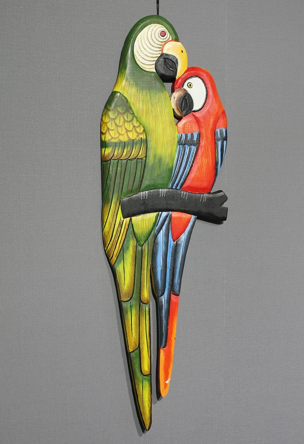 Ahşap Duvara Asmalı 2'li Papağan Model 1