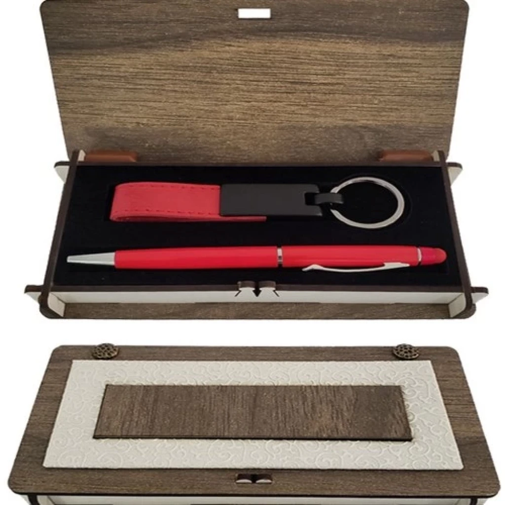 Ahşap kutuda, kırmızı renkte zarif kalem ve anahtarlık seti. Doğum günleri, yıldönümleri gibi özel günler için unutulmaz bir hediye seçeneği.Şık tasarımı, kaliteli malzemeleri ve kırmızı rengiyle dikkat çeken bu set, sevdiklerinizi mutlu edecek. Hem dekoratif hem de kullanışlı bir hediye arayanlar için ideal.Doğal ahşap kutuda sunulan kırmızı kalem ve anahtarlık seti, sevdiklerinize özel günlerde verebileceğiniz en anlamlı hediyelerden biri. Kırmızı rengin enerjisiyle öne çıkan bu set, her ortama uyum sağlar.
