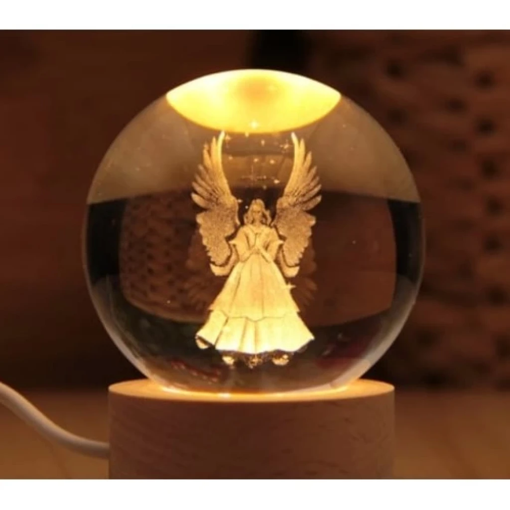 Ahşap Tabanlı Melek Tasarımlı Işıklı Cam KüreÜrün Açıklaması:Bu özel melek tasarımlı cam küre, 6 cm çapında cam ve 2 cm ahşap tabanıyla evinize huzur ve zarafet katıyor. LED ışığı sayesinde melek figürü göz alıcı bir şekilde aydınlanır ve bulunduğu ortama mistik bir hava katar. Hem dekoratif hem de anlamlı bir hediye seçeneği olarak tercih edilebilir.Boyutlar: Cam: 6 cm, Ahşap Taban: 2 cmMalzeme: Kaliteli cam ve doğal ahşap tabanÖzellikler: LED ışıklı, melek tasarım, dekoratif