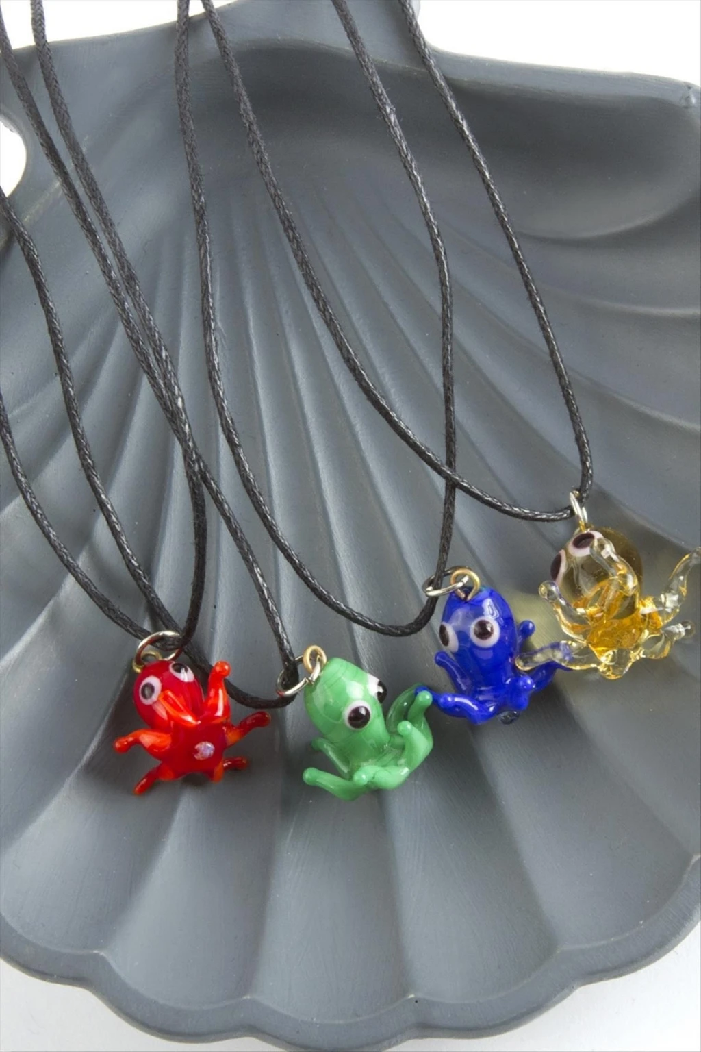 Cam Kolye; Kordonu vinlex deridir. Ürün ustalarımız tarafından atölyemizde tek tek el işçiliği ile üretilmektedir. İmalatımız da yerli cam ve orijinal italyan cam kullanılmaktadır. Cam ürünlerinde sanatsal bir işçilikle çalışılmaktadır. Ürün asortilidir. Siparişleriniz de karışık olarak gönderilecektir. Ürün cam boyu 1,5 cm ve ip boyu 45 cmdir.