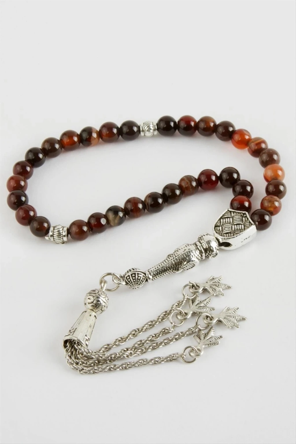 Tesbih; Gerçek Akik doğaltaş tan imal edilmiştir. Taş boyutu 6 mmdir. Ürün püskülleri asortilidir. Resimde görünen püskül farklı olarak gönderilebilir.