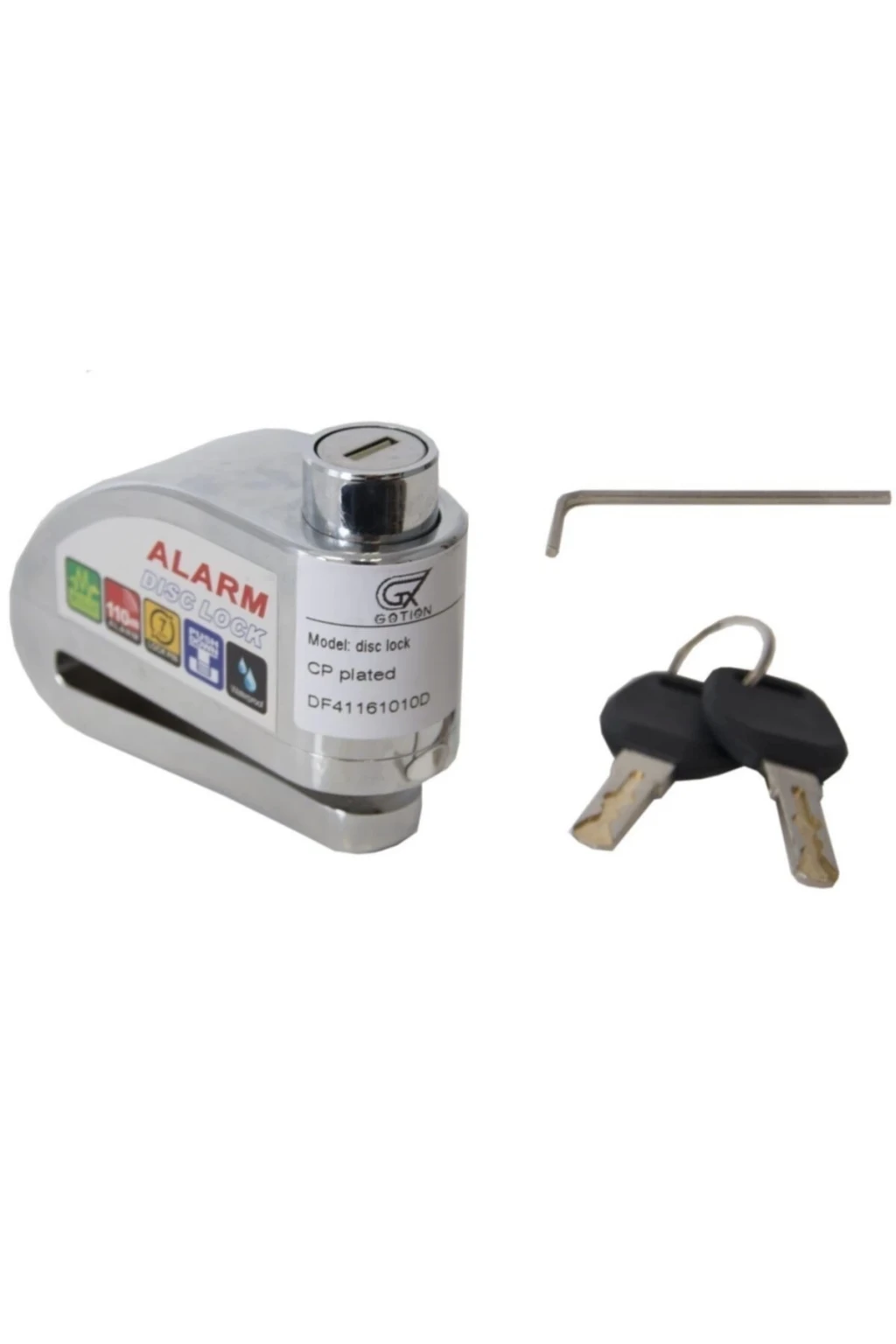 Alarmlı Motosiklet Disk Kilidi 110 Desibel Krom Bisiklet Scooter Alarmlı Disk Kilidi