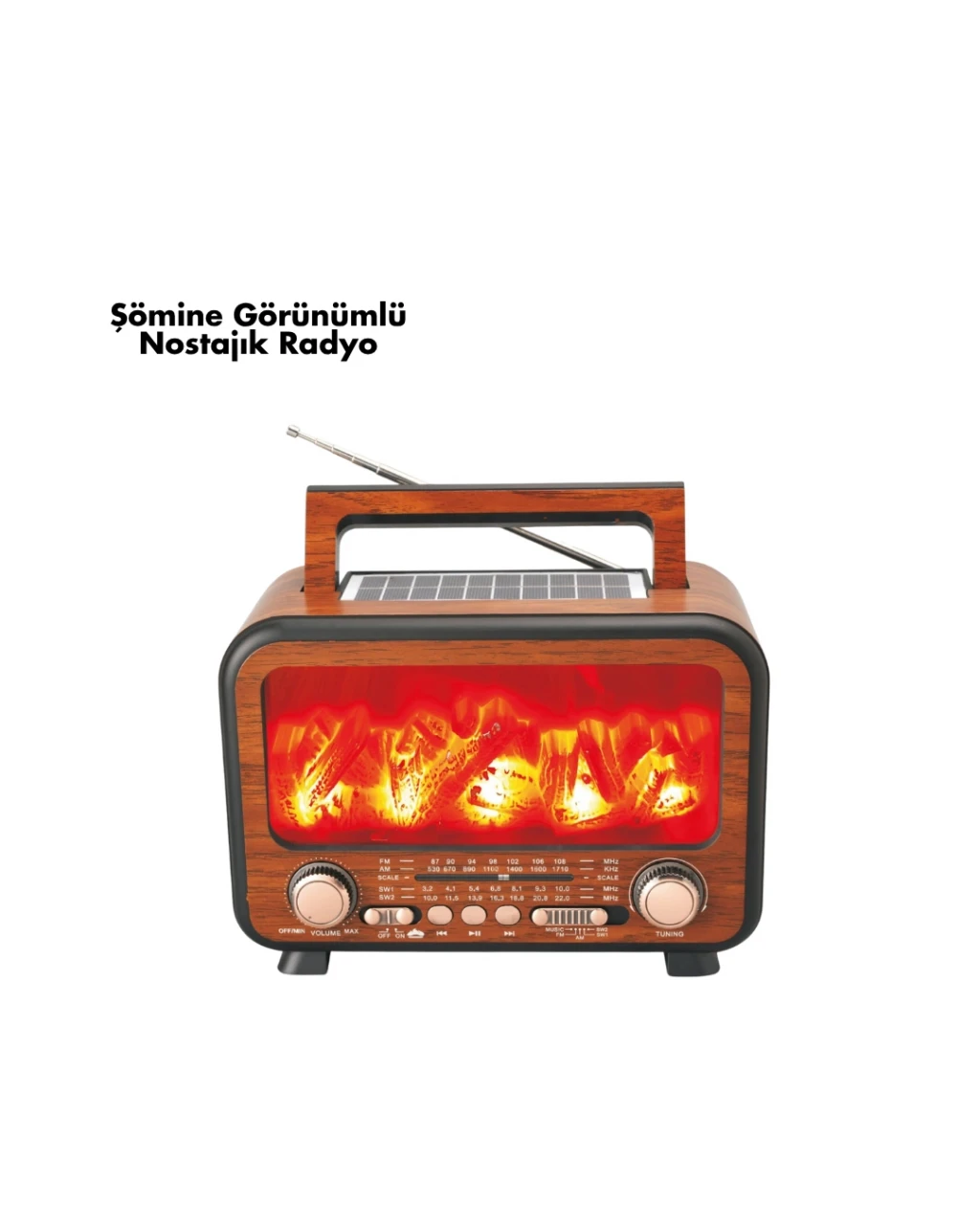 Müziğin enerjisini ve şömine sıcaklığını bir arada sunan bu taşınabilir solar Bluetooth hoparlör, hem görsel hem işitsel olarak etkileyici bir deneyim sağlar.Şömine alev ışığı efekti, loş ortamlarda rahatlatıcı bir atmosfer oluşturur. 7W hoparlör gücü, güçlü ses çıkışı ve derin bas dengesiyle her ortamda net müzik keyfi sunar.Bluetooth 5.3 teknolojisi, 10 metreye kadar kararlı bağlantı sağlar. Ayrıca USB, TF kart ve AUX girişiyle çok yönlü kullanım mümkündür.Dahili FM/AM/SW radyo özelliği, dilediğiniz istasyonu kolayca bulmanızı sağlar. Solar panel, güneş enerjisini toplayarak cihazı şarj eder; böylece doğada bile elektriksiz müzik keyfi yaşarsınız.Şarj edilebilir 18650 pil, uzun süreli kullanım sağlar. Plastik gövde dış mekanlara uygun dayanıklılık sunar. 250x145x180 mm boyutları ve 1.63 kg ağırlığı, taşımayı kolaylaştırır.Dahili mikrofon özelliğiyle eller serbest telefon görüşmeleri yapabilirsiniz.Kamp, piknik, bahçe veya sahil fark etmez — bu hoparlör, her ortamda sıcak bir ambiyans ve güçlü ses performansını birleştirir.Hem enerji tasarruflu hem de çevre dostu olan bu solar hoparlör, teknolojiyi estetikle buluşturan mükemmel bir seçimdir.