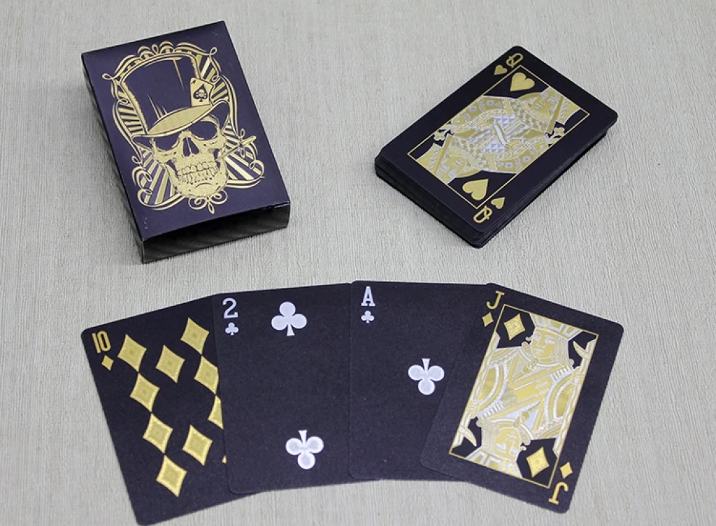 Altın Kurukafa Tasarımlı Siyah İskambil Oyun Kartı