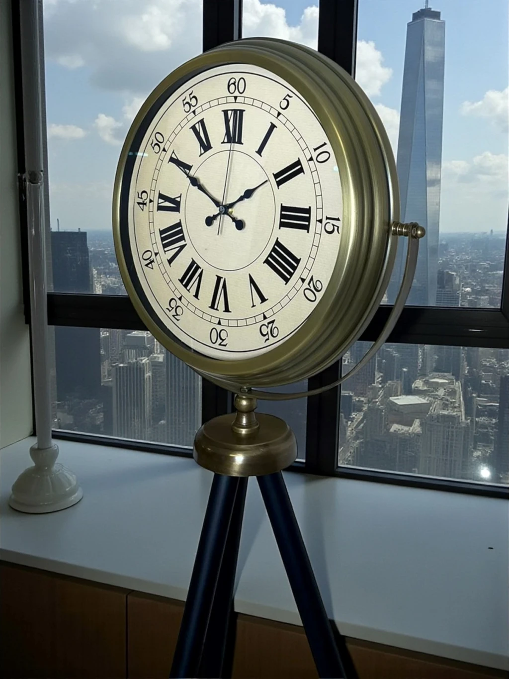 Zamanı yalnızca göstermekle kalmayıp bulunduğu ortama karakter katan bu eskitme tripod ayaklı yer saati, şık tasarımı modern dokunuşlarla birleştirerek yaşam alanlarınıza prestijli bir atmosfer kazandırır. Antik esintiler taşıyan metal gövdesi, zarif tripod ayak yapısı ve detaylı kadran tasarımıyla sıradan saatlerin çok ötesinde, başlı başına bir dekor objesidir.