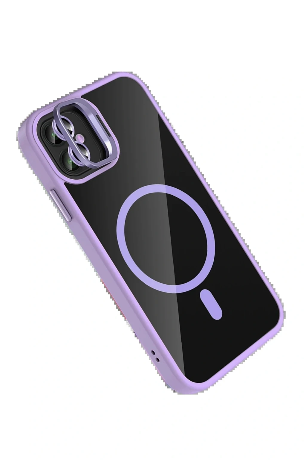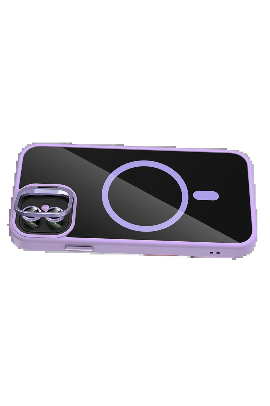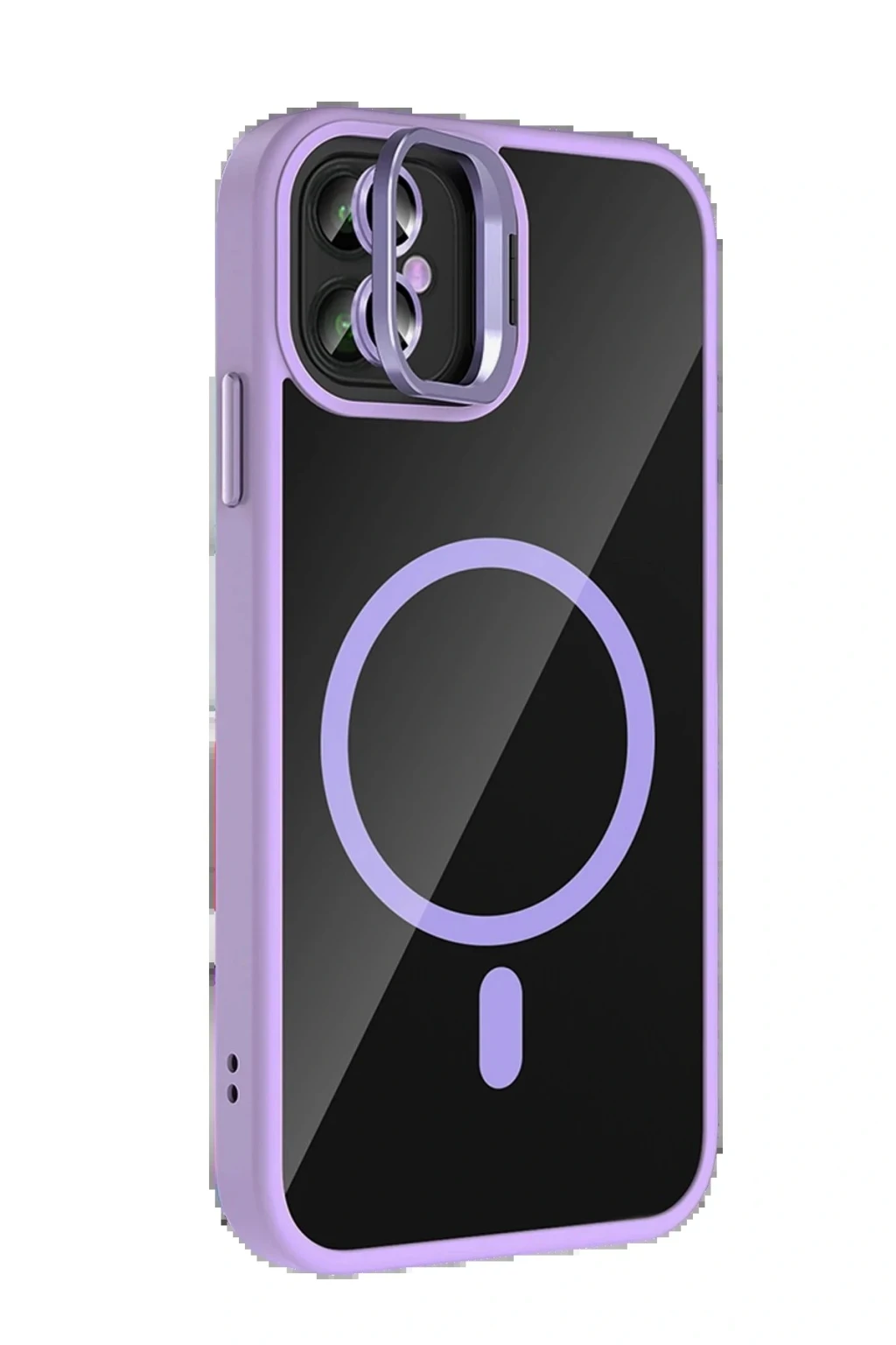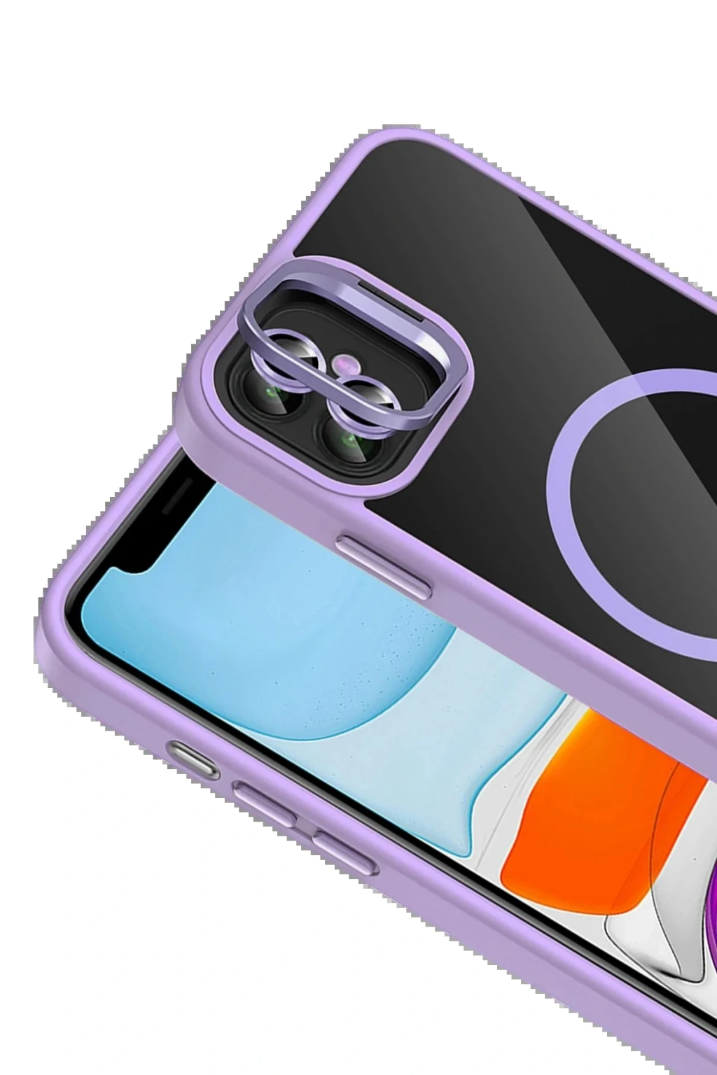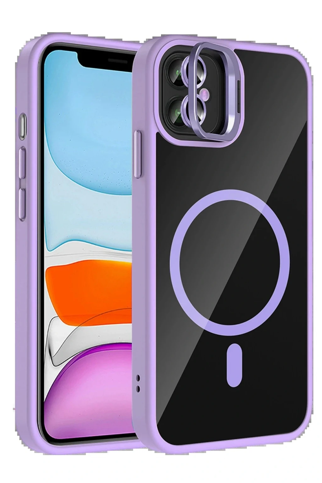 Apple iPhone 11 Remim Lensli Magsafe Standlı Kapak - Lila