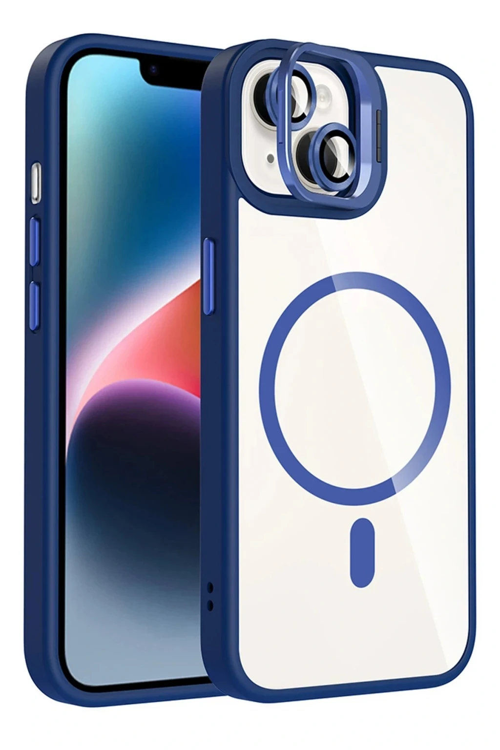 Apple iPhone 13 Remim Lensli Magsafe Standlı Kapak - Lacivert