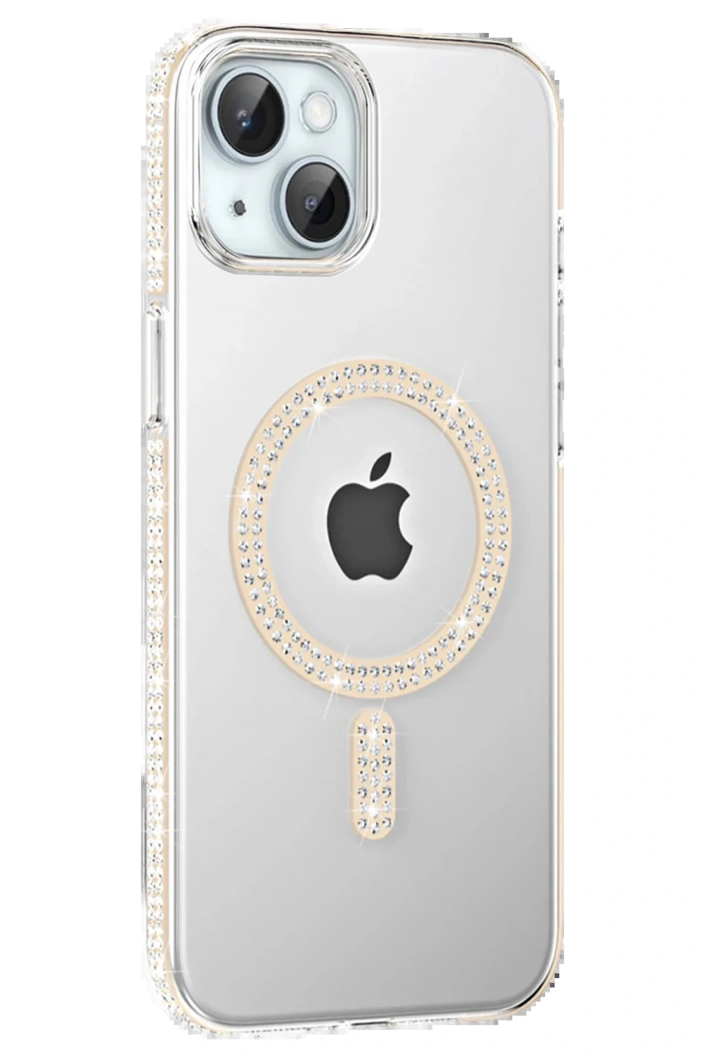 Apple iPhone 14 Move Taşlı Magsafe Kapak - Pembe