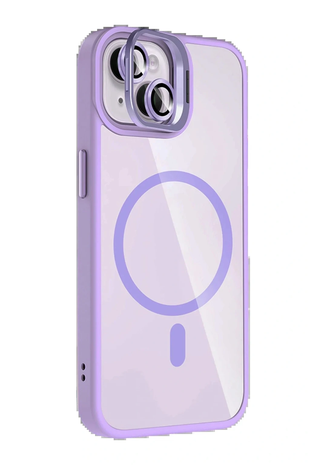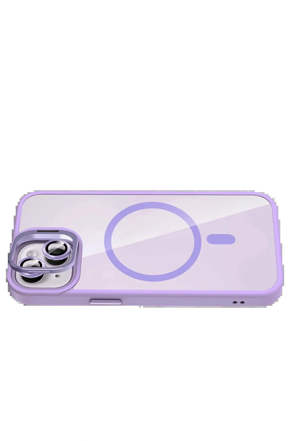 Apple iPhone 14 Remim Lensli Magsafe Standlı Kapak - Lila