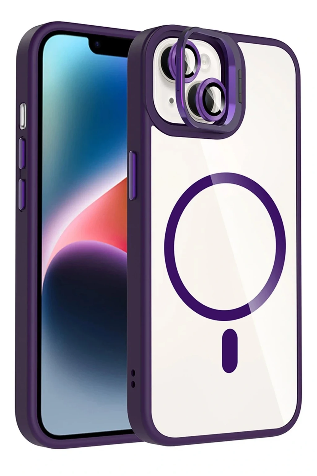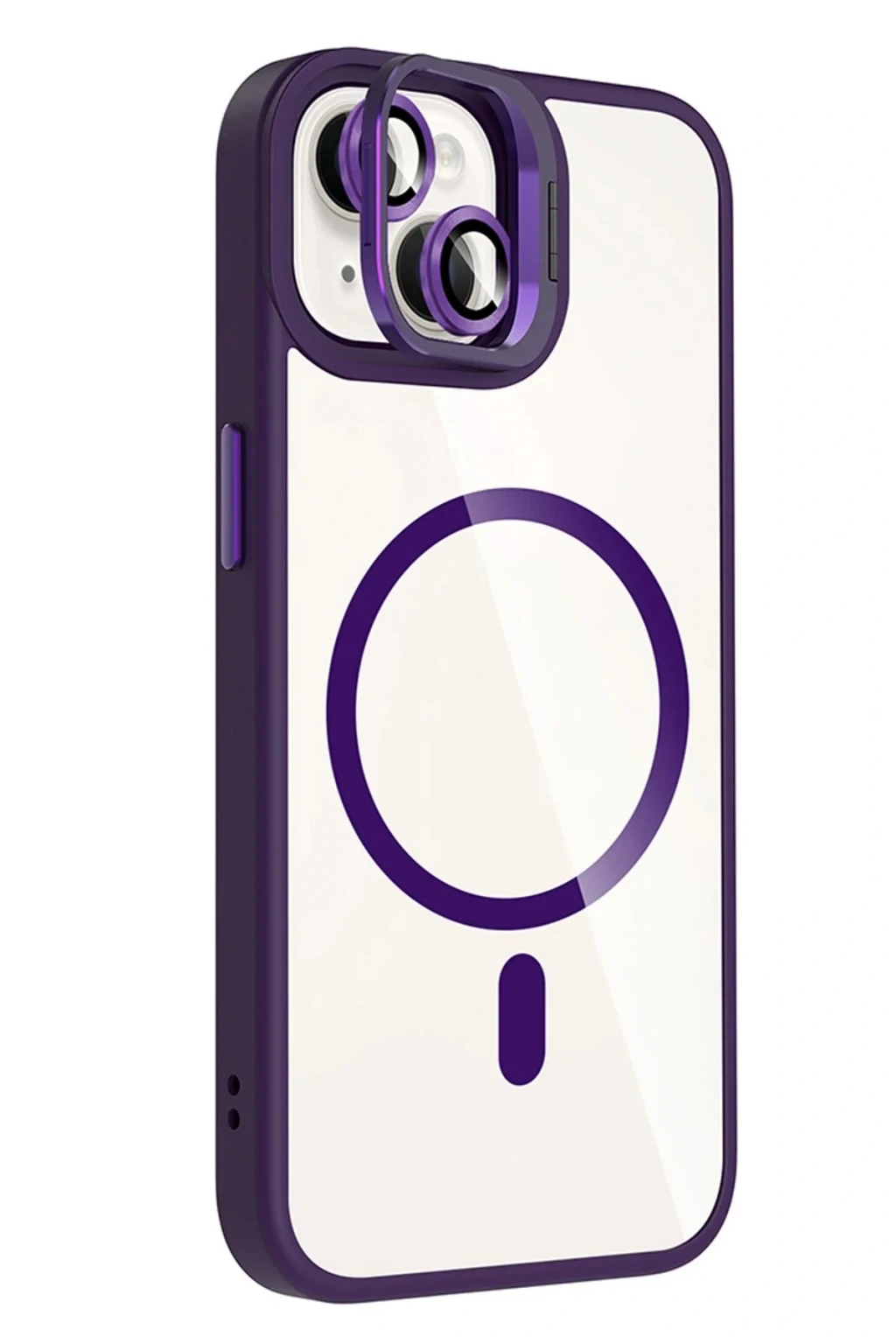 Apple iPhone 15 Plus Remim Lensli Magsafe Standlı Kapak - Derin Mor