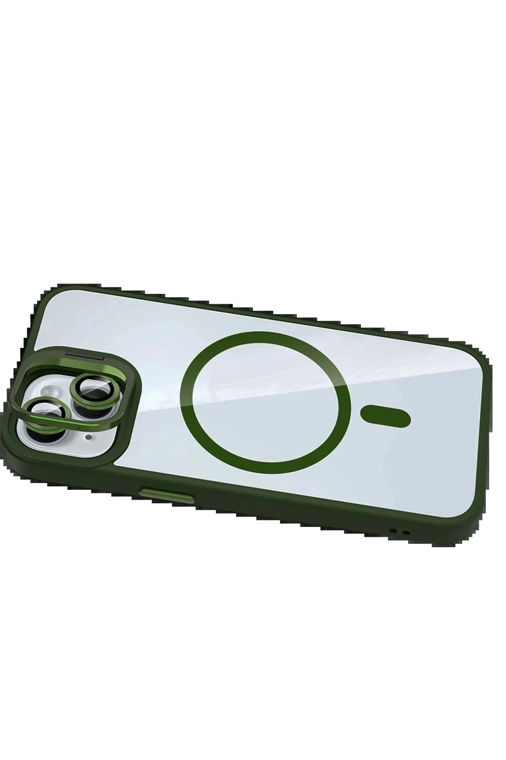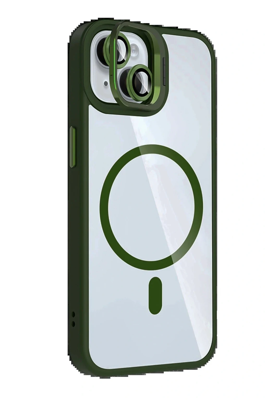 Apple iPhone 15 Plus Remim Lensli Magsafe Standlı Kapak - Koyu Yeşil