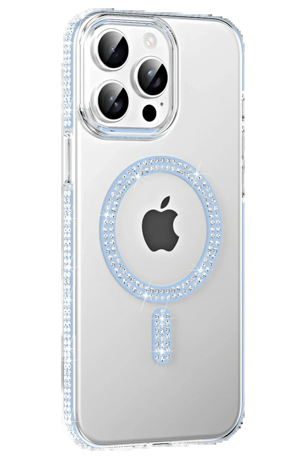 Apple iPhone 15 Pro Move Taşlı Magsafe Kapak - Mavi