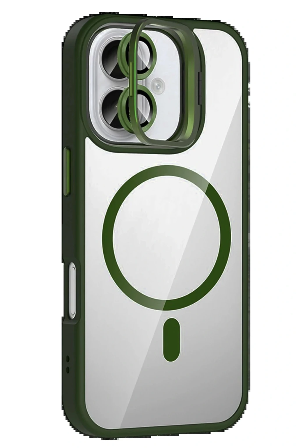Apple iPhone 16 Plus Remim Lensli Magsafe Standlı Kapak - Koyu Yeşil