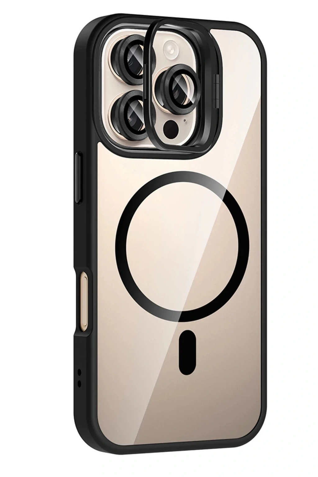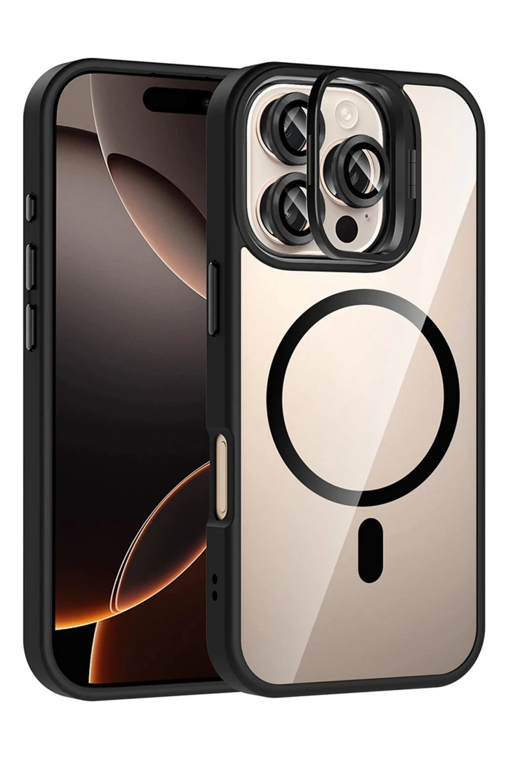 Apple iPhone 16 Pro Max Remim Lensli Magsafe Standlı Kapak - Siyah