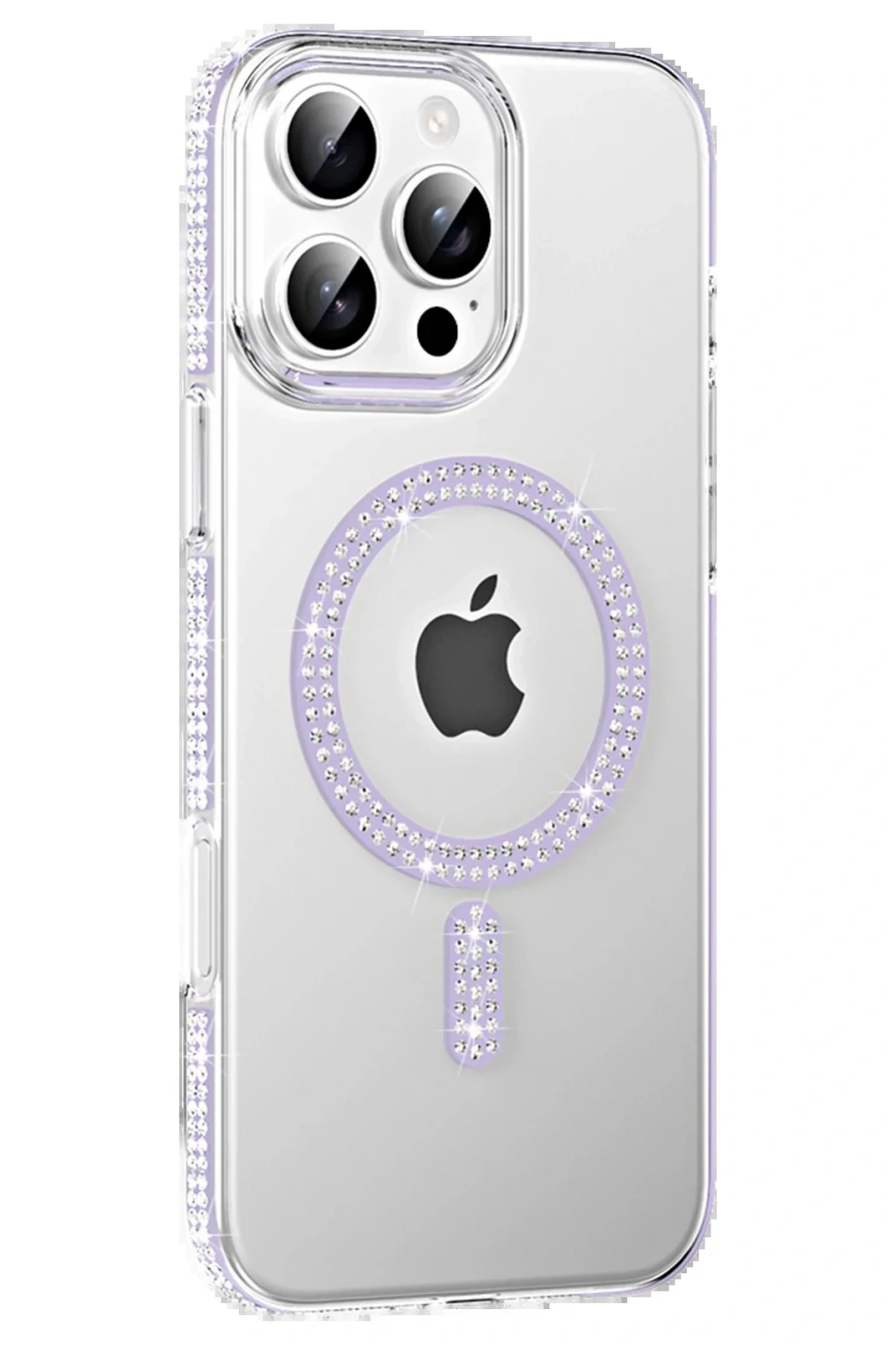 Apple iPhone 16 Pro Move Taşlı Magsafe Kapak - Lila