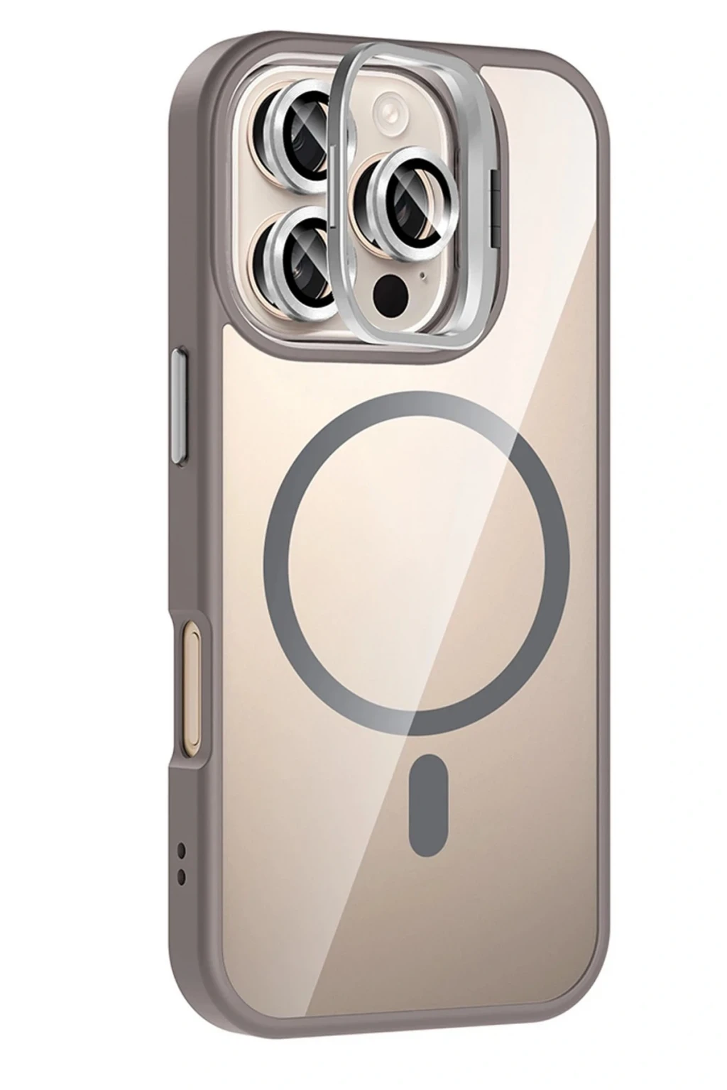 Apple iPhone 16 Pro Remim Lensli Magsafe Standlı Kapak - Titan Gri