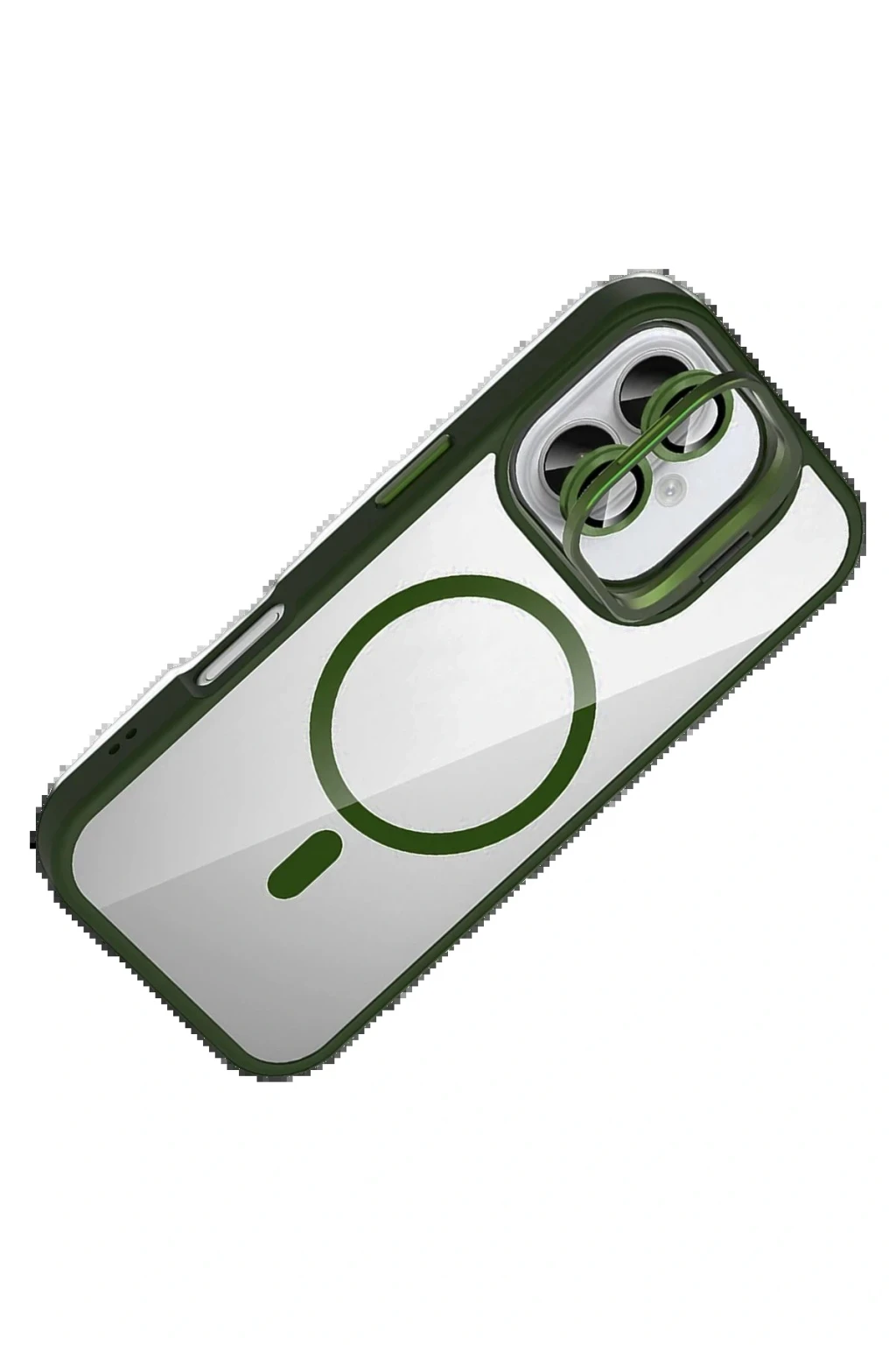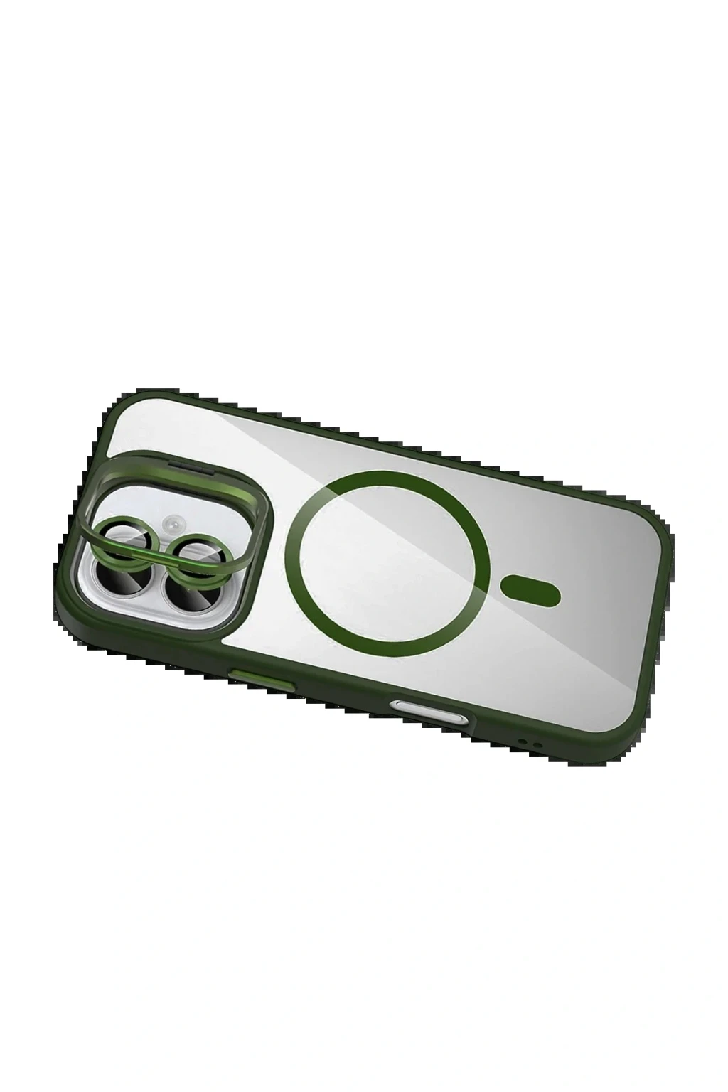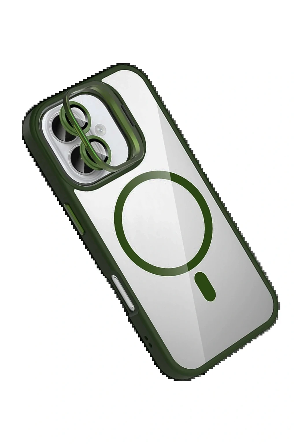 Apple iPhone 16 Remim Lensli Magsafe Standlı Kapak - Koyu Yeşil