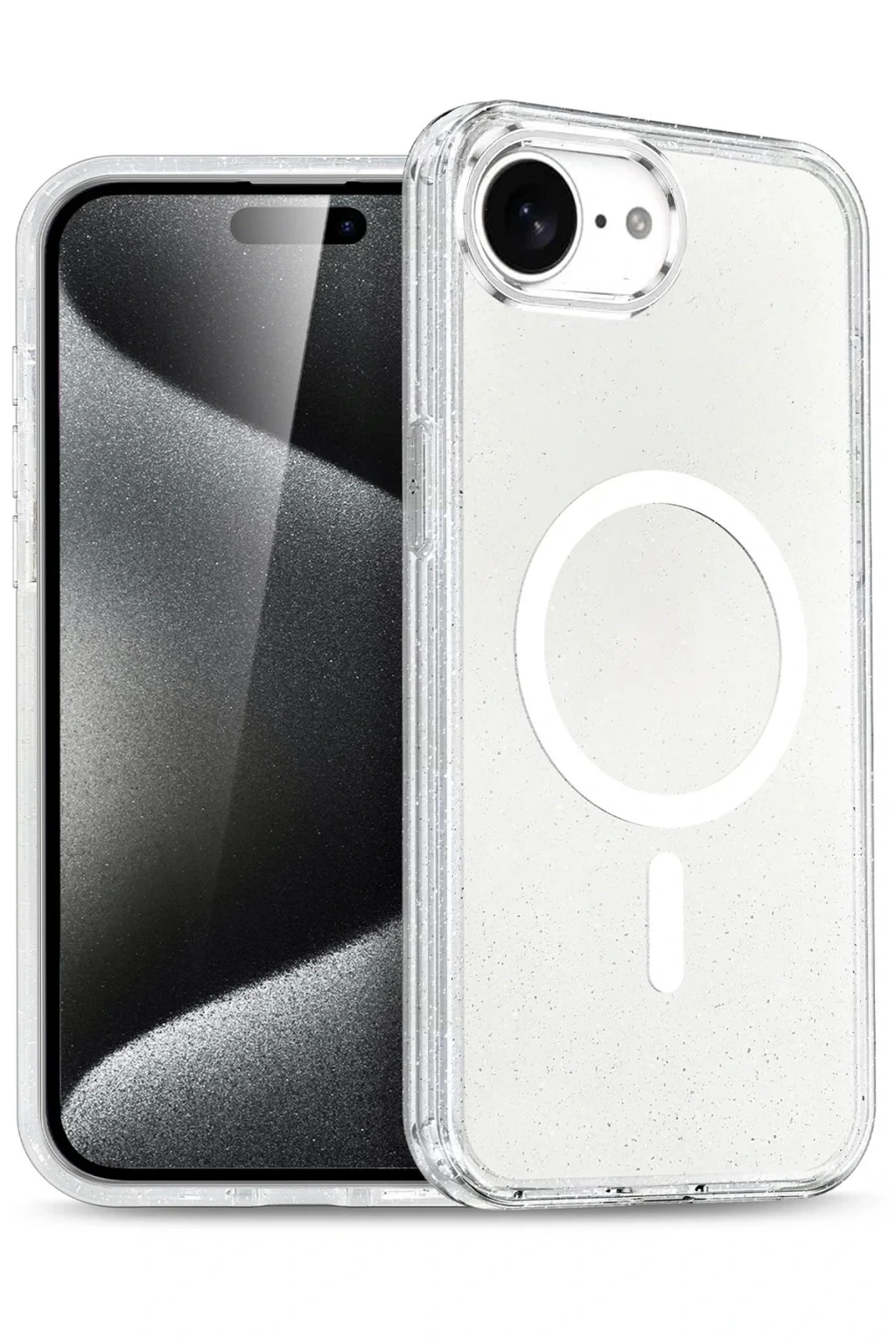 Glow MagSafe Kapak, telefonunuzu her açıdan öne çıkaran parlak ve şık bir tasarıma sahiptir. Simli arka planı, ışık altında parlayarak cihazınıza göz alıcı bir görünüm kazandırır.