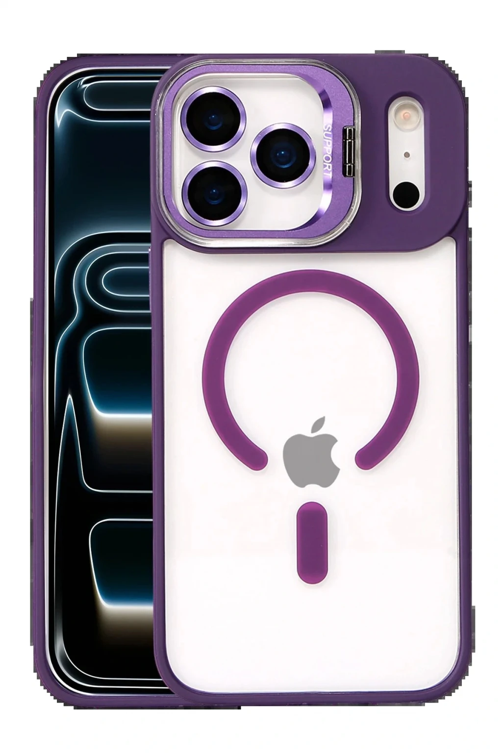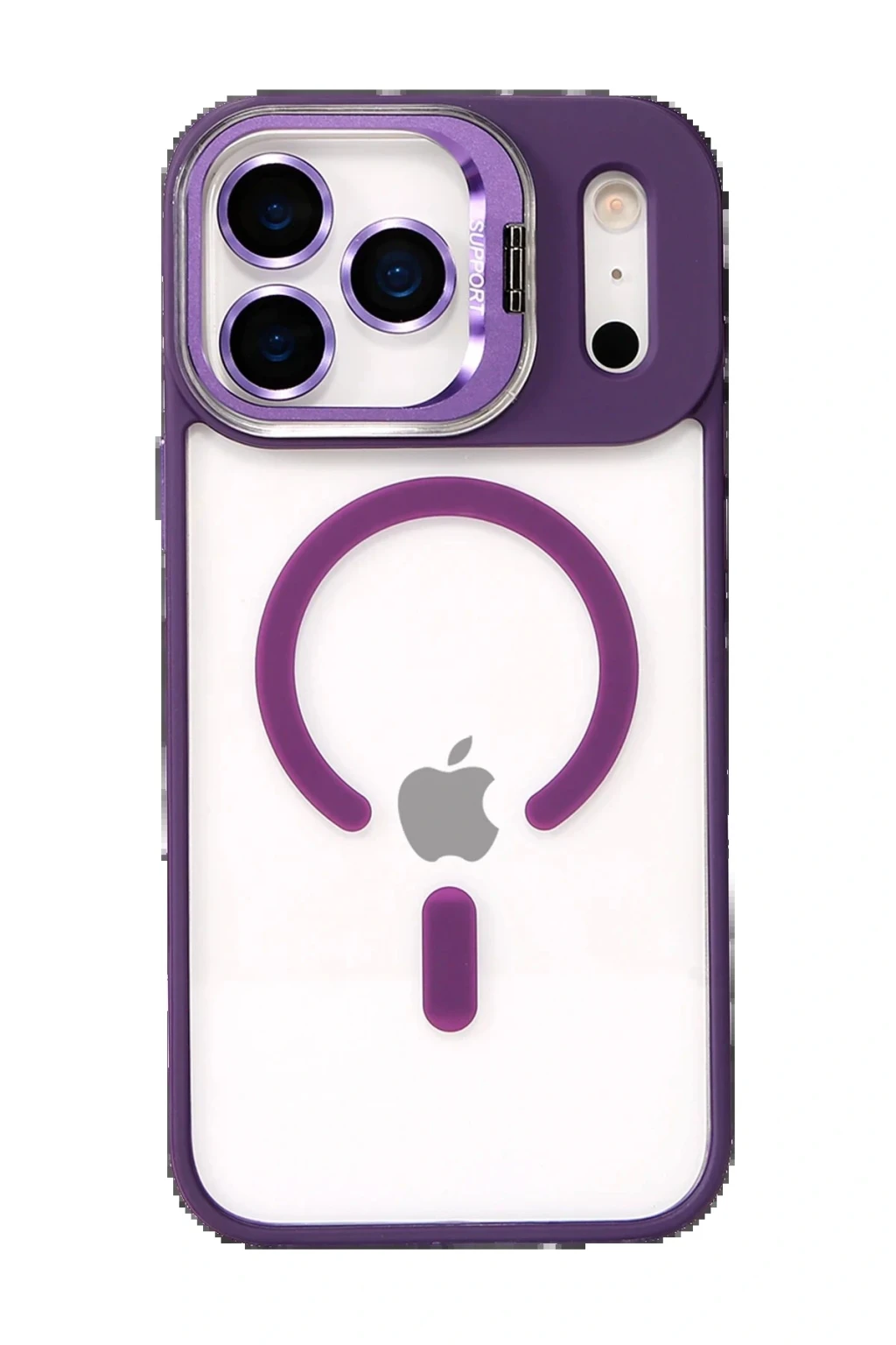 Apple iPhone 17 Pro Max Remim Lensli Magsafe Standlı Kapak - Derin Mor