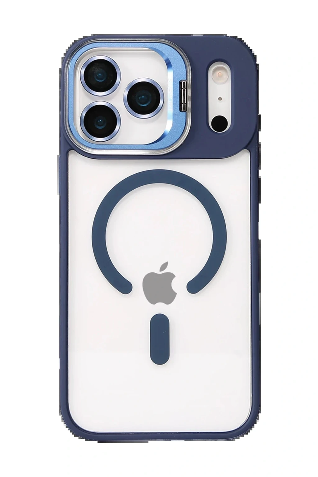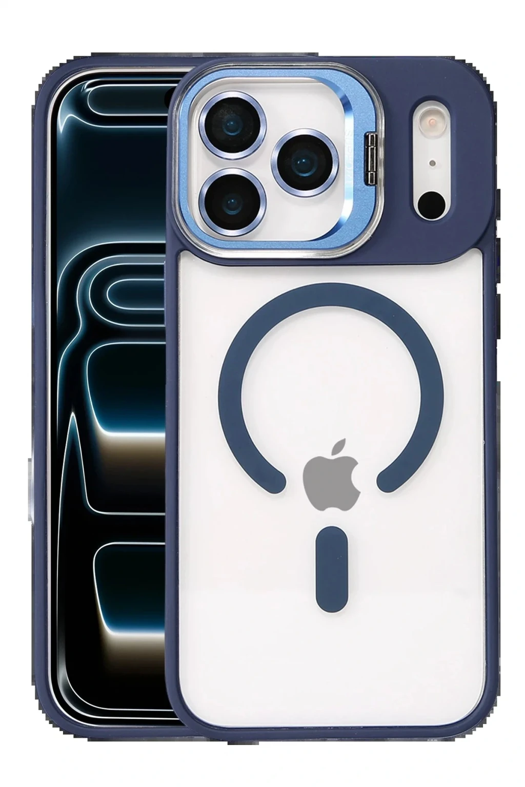 Apple iPhone 17 Pro Max Remim Lensli Magsafe Standlı Kapak - Lacivert
