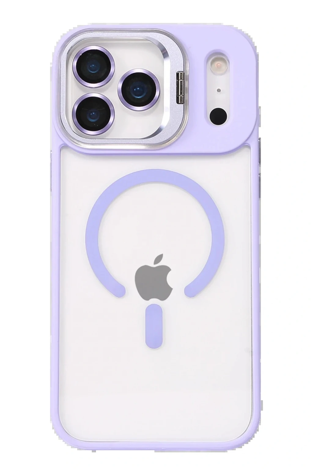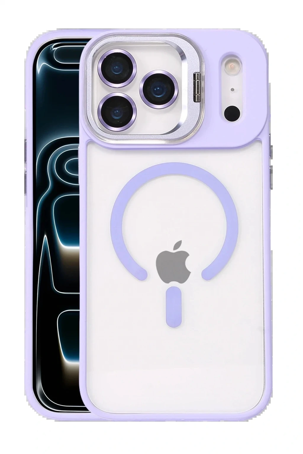 Apple iPhone 17 Pro Max Remim Lensli Magsafe Standlı Kapak - Lila