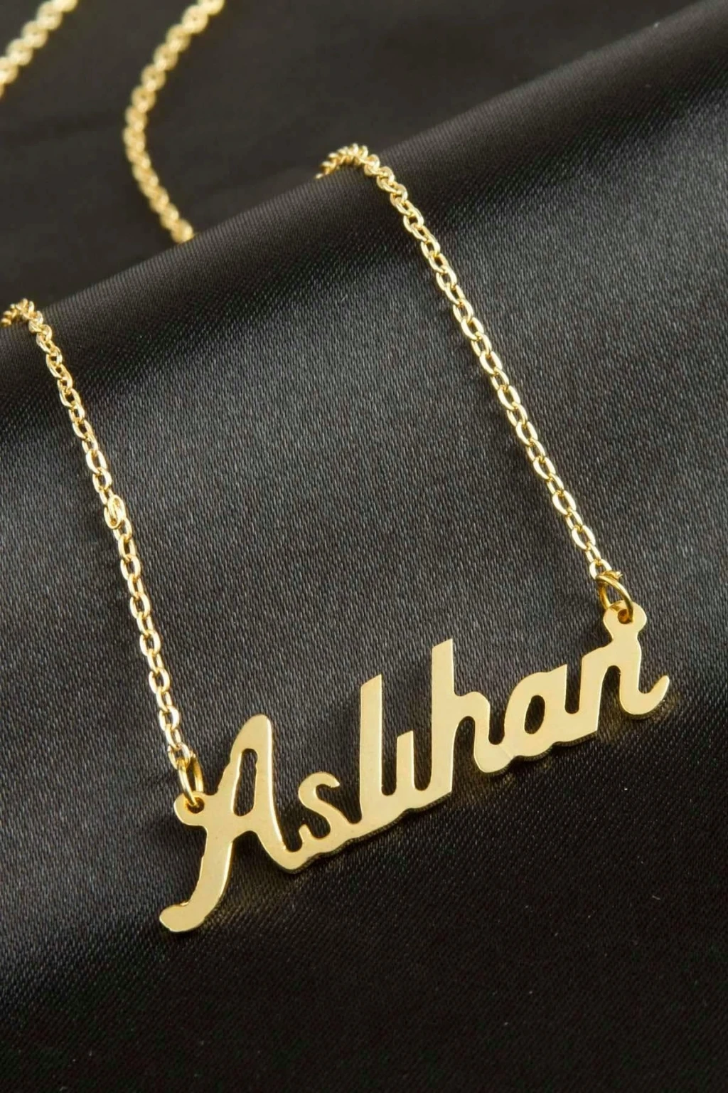 Aslıhan isimli kolye. İsimli kolye pirinç madeninden ve altın kaplamalıdır. Kişiye özel üretilmektedir.Yazdırmak istediğiniz ismi bize mesaj olarak iletmeniz gerekmektedir. Kullanıma bağlı olarak uzun süre kullanıma uygundur. Ürün malzemesi 1.sınıf kalitededir. Ürün ve zinciri sarı renktedir. Ürün zincir boyu 45 cm ve ürün üzerindeki isimler yaklaşık 3 cmdir. İsim boyları ürün ismine göre degişiklik göstermektedir.