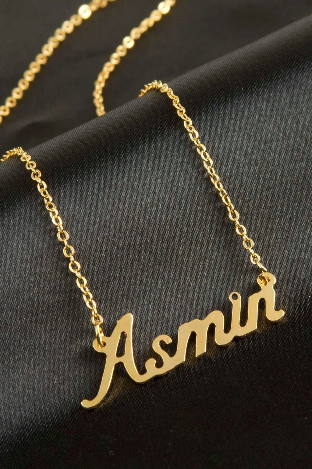 Asmin isimli kolye. İsimli kolye pirinç madeninden ve altın kaplamalıdır. Kişiye özel üretilmektedir.Yazdırmak istediğiniz ismi bize mesaj olarak iletmeniz gerekmektedir. Kullanıma bağlı olarak uzun süre kullanıma uygundur. Ürün malzemesi 1.sınıf kalitededir. Ürün ve zinciri sarı renktedir. Ürün zincir boyu 45 cm ve ürün üzerindeki isimler yaklaşık 3 cmdir. İsim boyları ürün ismine göre degişiklik göstermektedir.