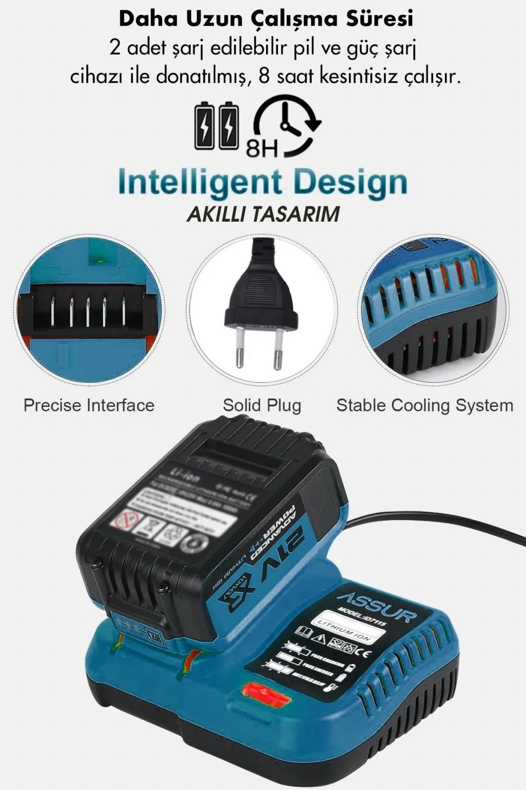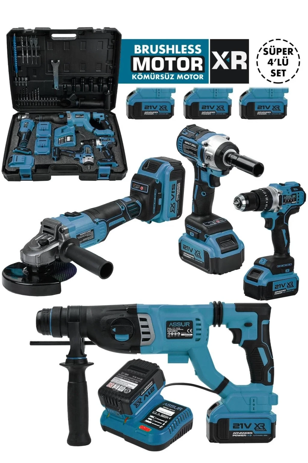 Assur Profesyonel 21V Akülü Somun Sıkma Sökme Matkap Taşlama Kırıcı Delici Hilti 4'lü Set