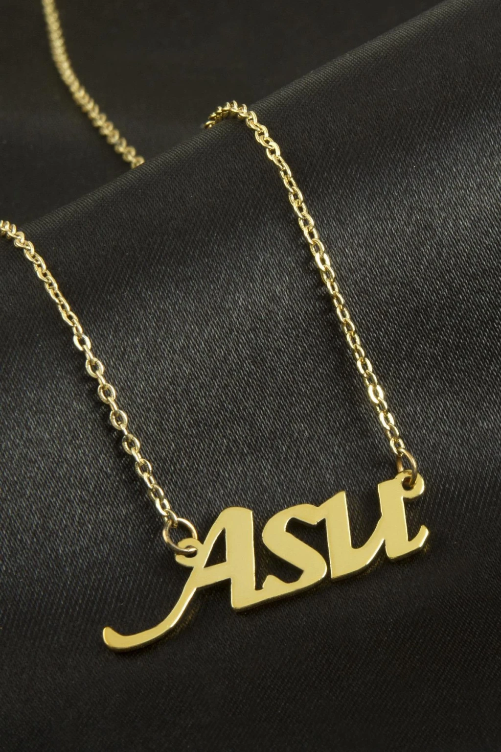 Asu isimli kolye. İsimli kolye pirinç madeninden ve altın kaplamalıdır. Kişiye özel üretilmektedir.Yazdırmak istediğiniz ismi bize mesaj olarak iletmeniz gerekmektedir. Kullanıma bağlı olarak uzun süre kullanıma uygundur. Ürün malzemesi 1.sınıf kalitededir. Ürün ve zinciri sarı renktedir. Ürün zincir boyu 45 cm ve ürün üzerindeki isimler yaklaşık 3 cmdir. İsim boyları ürün ismine göre degişiklik göstermektedir.