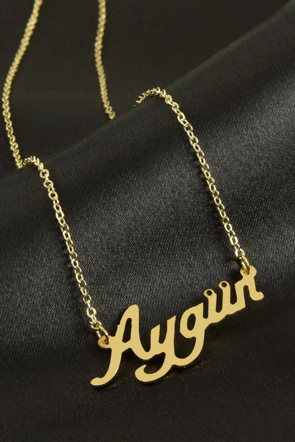 Aygün İsimli Kolye. İsimli kolye pirinç madeninden ve altın kaplamalıdır. Kişiye özel üretilmektedir.Yazdırmak istediğiniz ismi bize mesaj olarak iletmeniz gerekmektedir. Kullanıma bağlı olarak uzun süre kullanıma uygundur. Ürün malzemesi 1.sınıf kalitededir. Ürün ve zinciri sarı renktedir. Ürün zincir boyu 45 cm ve ürün üzerindeki isimler yaklaşık 3 cmdir. İsim boyları ürün ismine göre degişiklik göstermektedir.