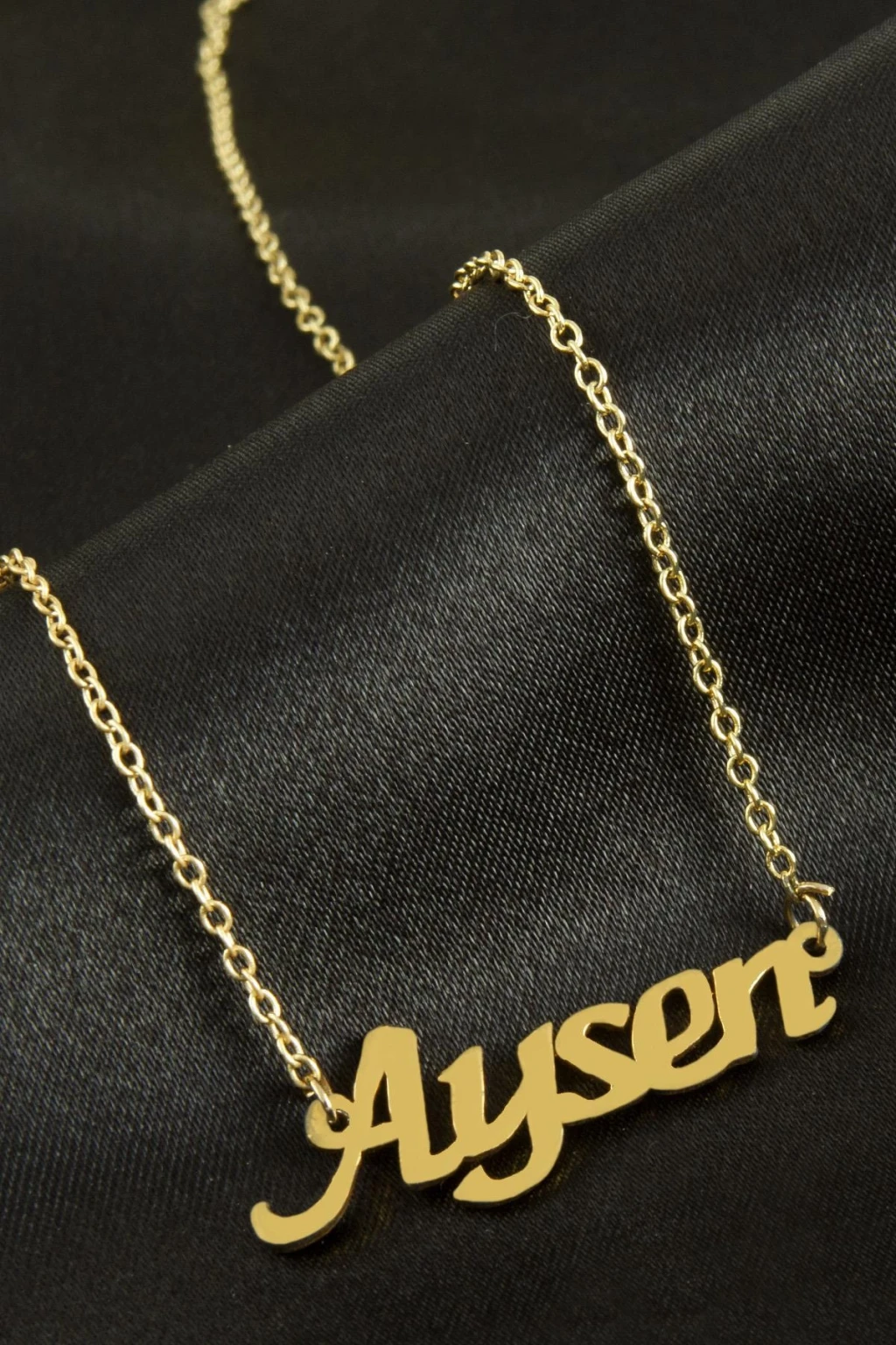 Aysen isimli kolye. İsimli kolye pirinç madeninden ve altın kaplamalıdır. Kişiye özel üretilmektedir.Yazdırmak istediğiniz ismi bize mesaj olarak iletmeniz gerekmektedir. Kullanıma bağlı olarak uzun süre kullanıma uygundur. Ürün malzemesi 1.sınıf kalitededir. Ürün ve zinciri sarı renktedir. Ürün zincir boyu 45 cm ve ürün üzerindeki isimler yaklaşık 3 cmdir. İsim boyları ürün ismine göre degişiklik göstermektedir.