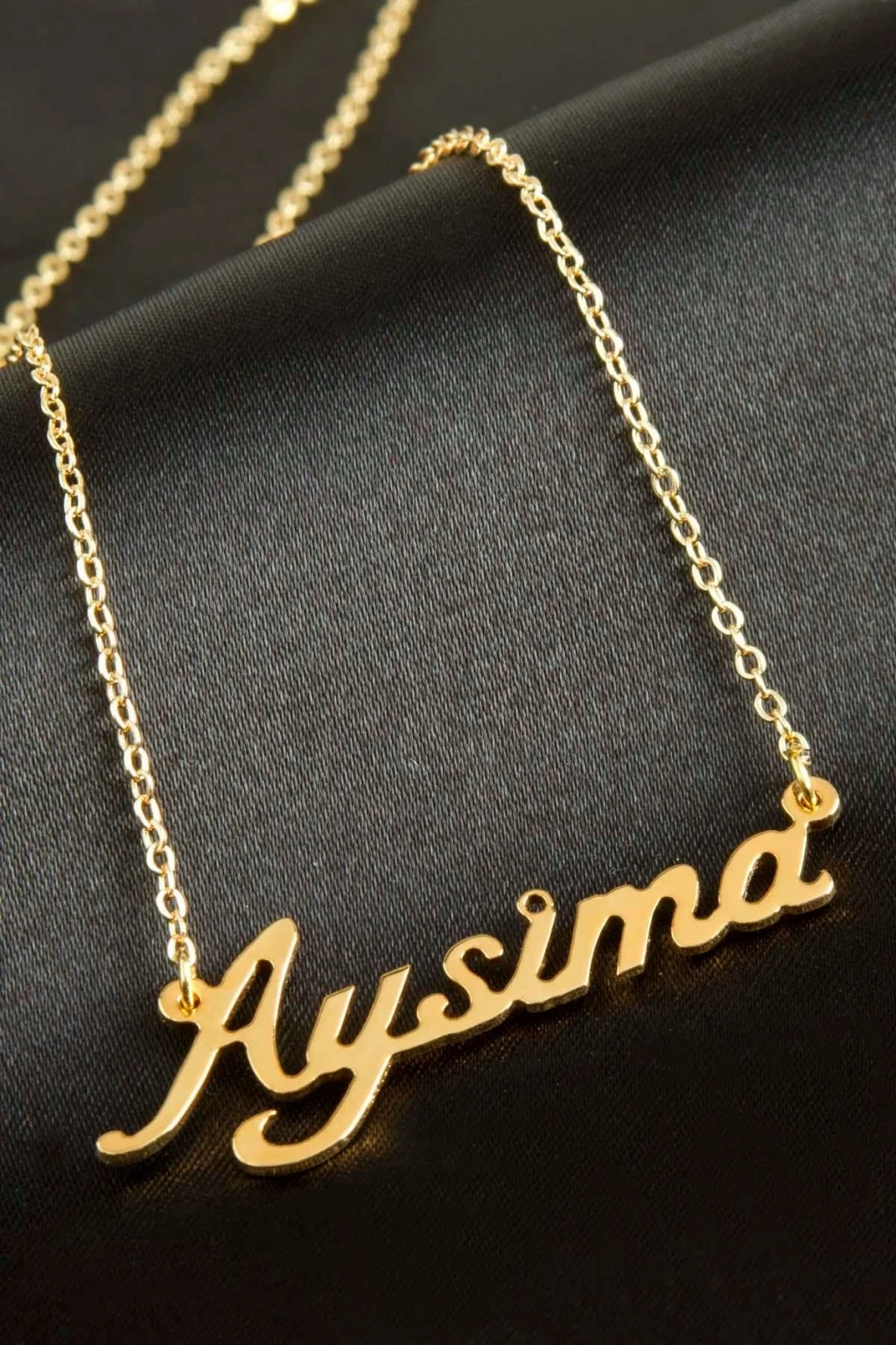 Aysima İsimli Kolye. İsimli kolye pirinç madeninden ve altın kaplamalıdır. Kişiye özel üretilmektedir.Yazdırmak istediğiniz ismi bize mesaj olarak iletmeniz gerekmektedir. Kullanıma bağlı olarak uzun süre kullanıma uygundur. Ürün malzemesi 1.sınıf kalitededir. Ürün ve zinciri sarı renktedir. Ürün zincir boyu 45 cm ve ürün üzerindeki isimler yaklaşık 3 cmdir. İsim boyları ürün ismine göre degişiklik göstermektedir.