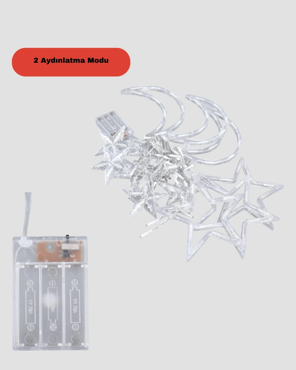 Dekoratif yıldız ay şekilli pilli perde led aydınlatma, estetik tasarımı ve pratik kullanımı ile dikkat çeker. Yumuşak ışık yayılımı sayesinde bulunduğu ortamda huzurlu ve romantik bir atmosfer oluşturur.İki farklı ışık modu, farklı dekorasyon stillerine uyum sağlar. Pilli yapısı, kablo derdi olmadan kullanım imkânı sunar. Güvenli, dayanıklı ve uzun ömürlü yapısı ile hem ev hem de ticari alanlarda rahatlıkla tercih edilebilir.