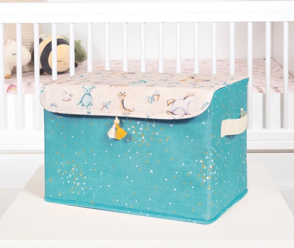 Baby Püsküllü Kapaklı Kutu Düzenleyici Çok Amaçlı Organizer Kutu Maxi Boy (Yeşil)