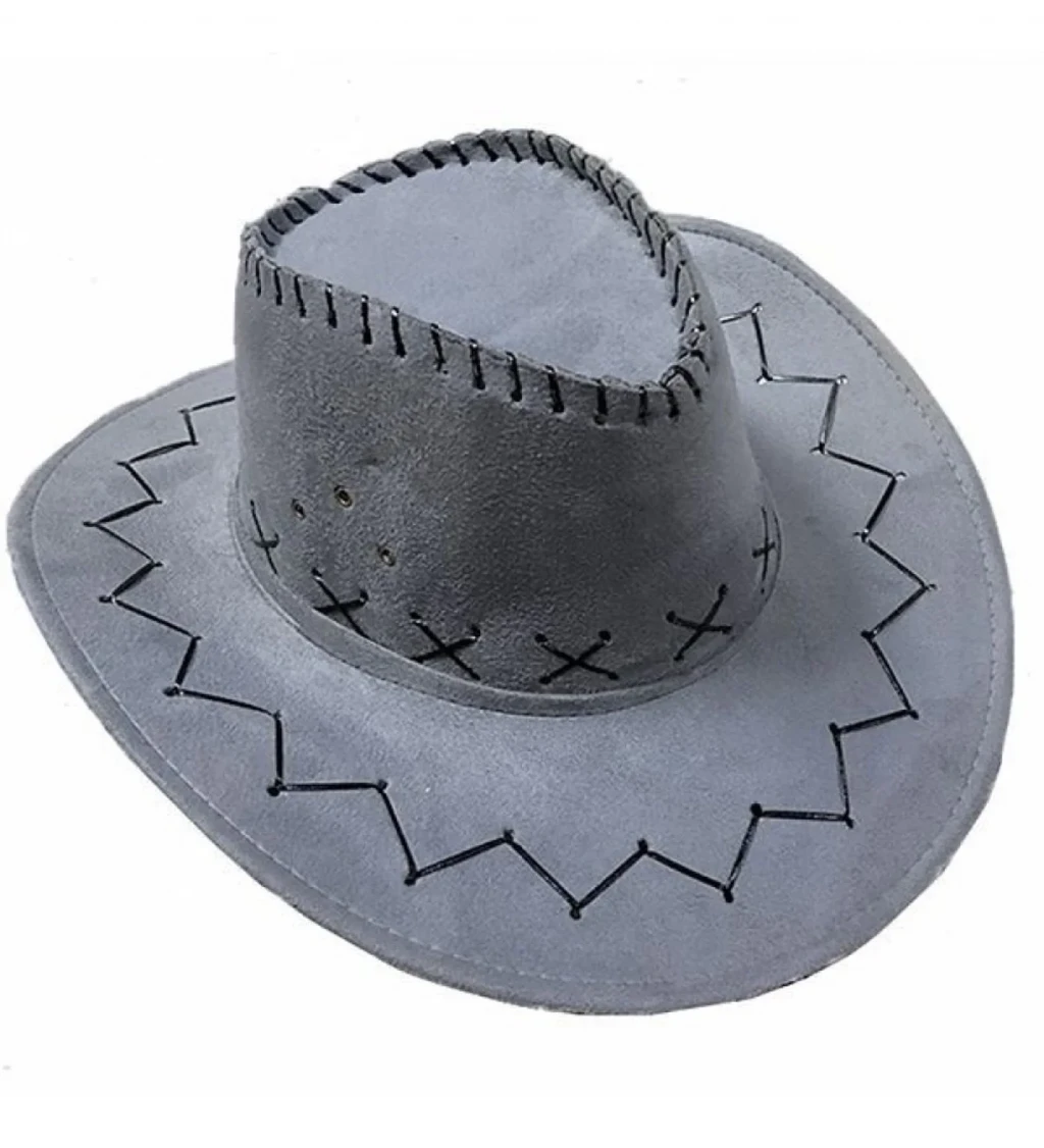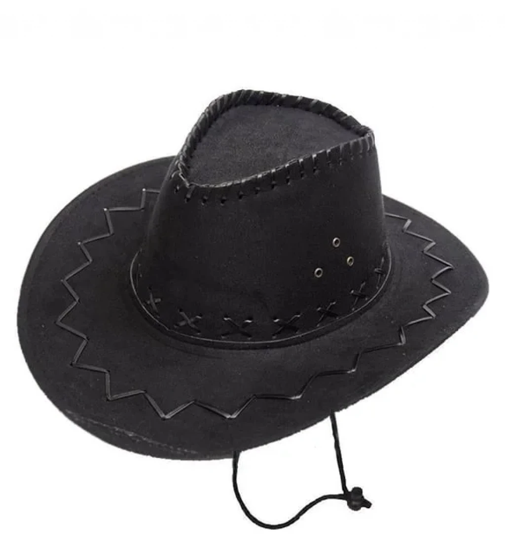 Bağcıklı Yetişkin Boy Nubuk Süet Kovboy Şapkası