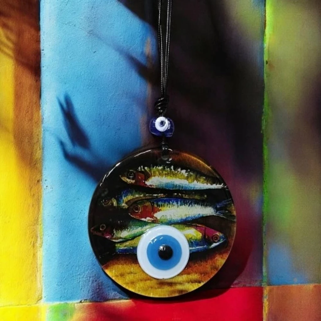 Balık resimli duvar süsümüz tamamen el işçiliği ile üretilmiştir. Tasarım harikası el yapımı balık resimli duvar süsümüz 12 santimetre çapındadır. Ürünümüz ip dahil 25 santimetre boyundadır.