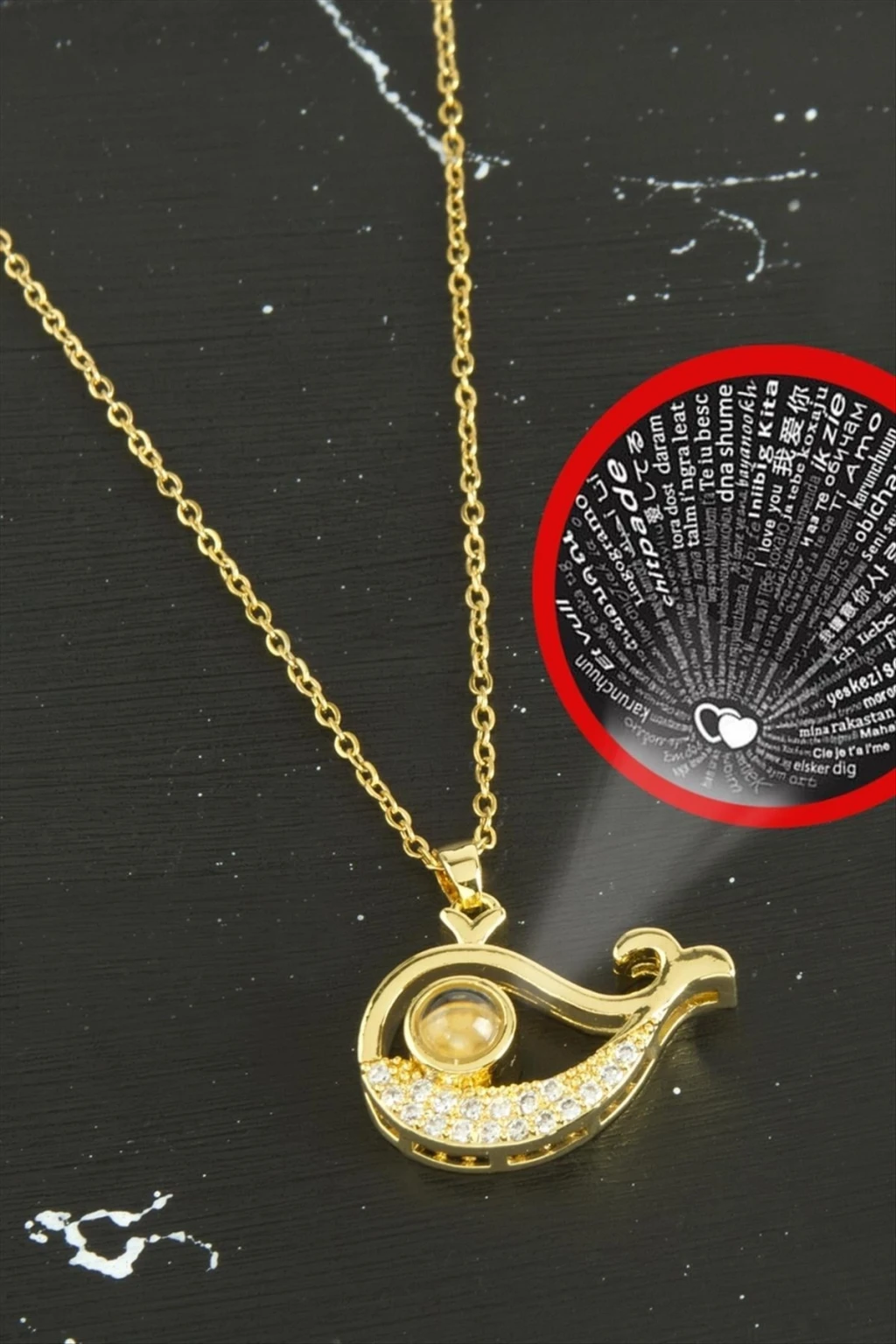 Kolye; Ürün malzemesi zirkon taş ve çeliktir. Kararma yapmaz. 1 nci sınıf kaliteli malzemeden üretilmiştir. Zincir uzunluğu 50 cm ve ucundaki aparat boyu 2 cmdir. Kartlı ve paketiyle beraber gönderilecektir.