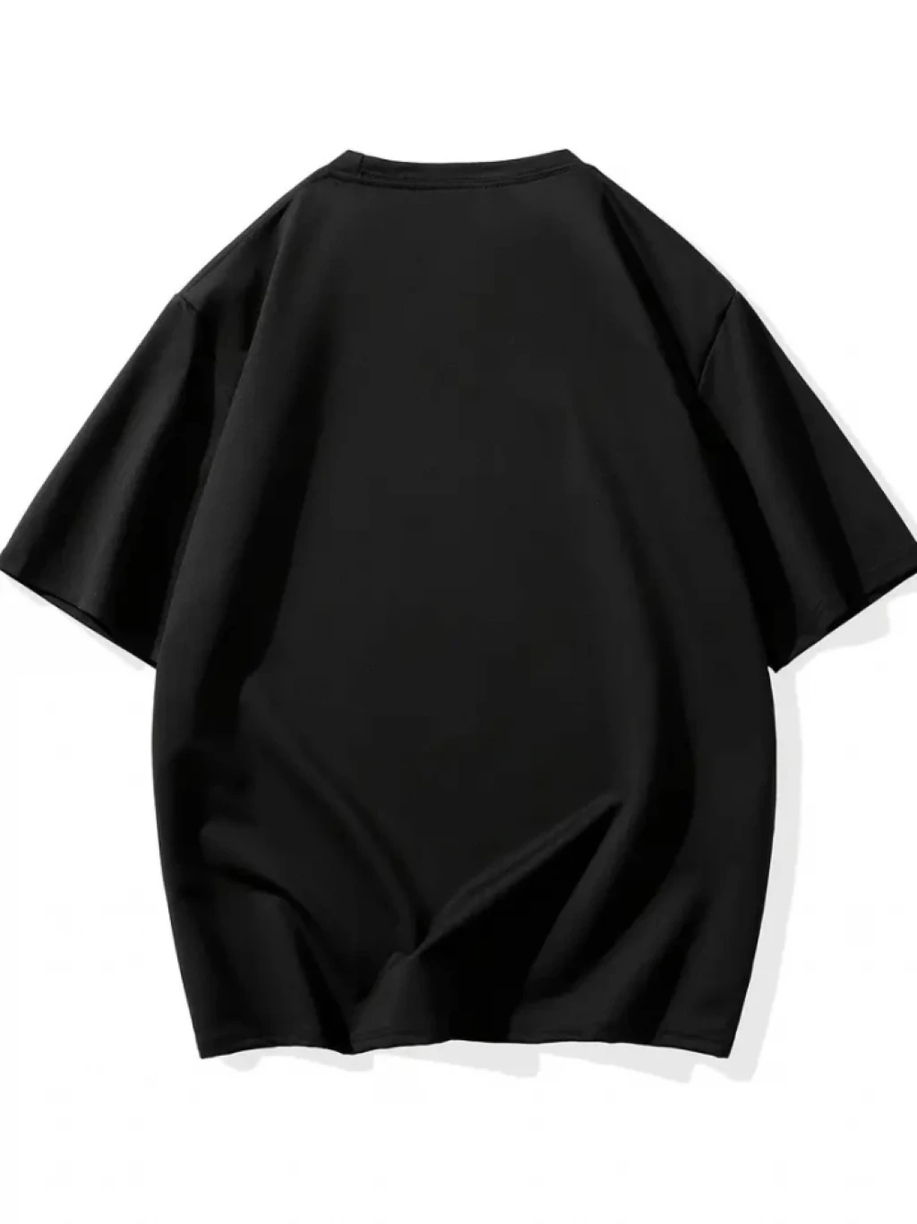 Baskılı Oversize Bisiklet Yaka T-shirt - Siyah