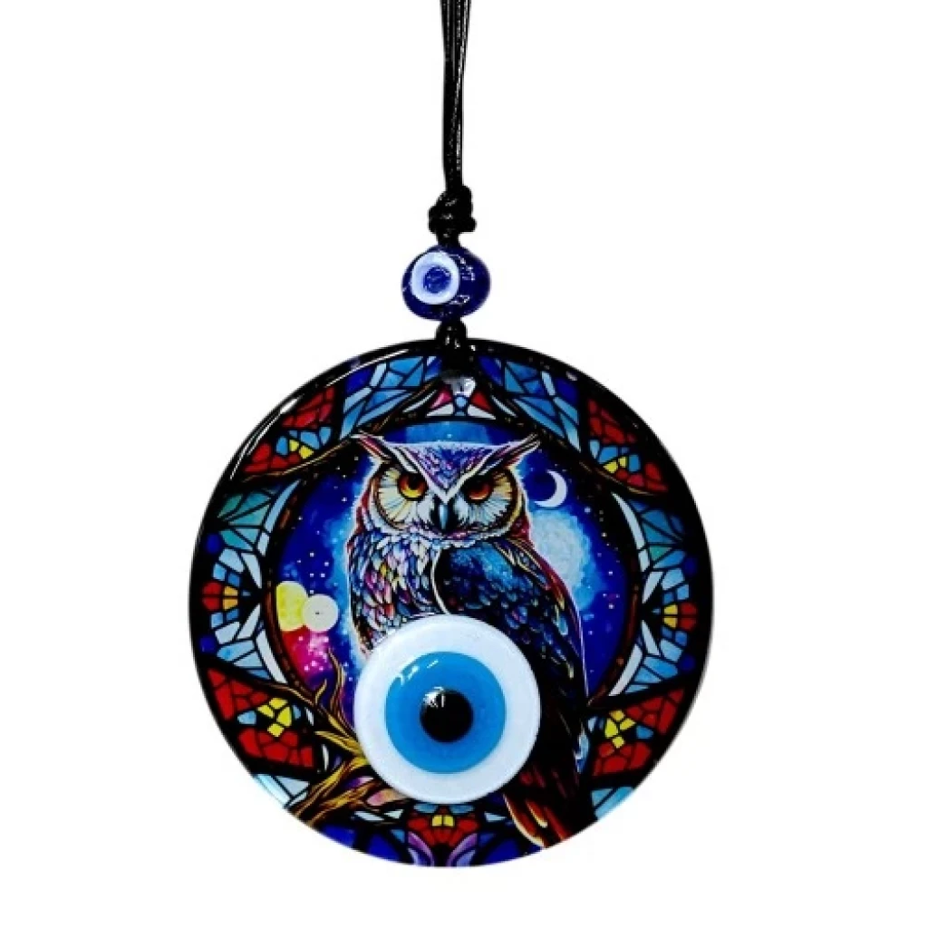 Baykuş resimli duvar süsümüz el yapımıdır. Tasarım harikası el yapımı baykuş duvar süsümüz 12 santimetre çapındadır. Ürünümüz ip dahil 25 santimetre boyundadır.