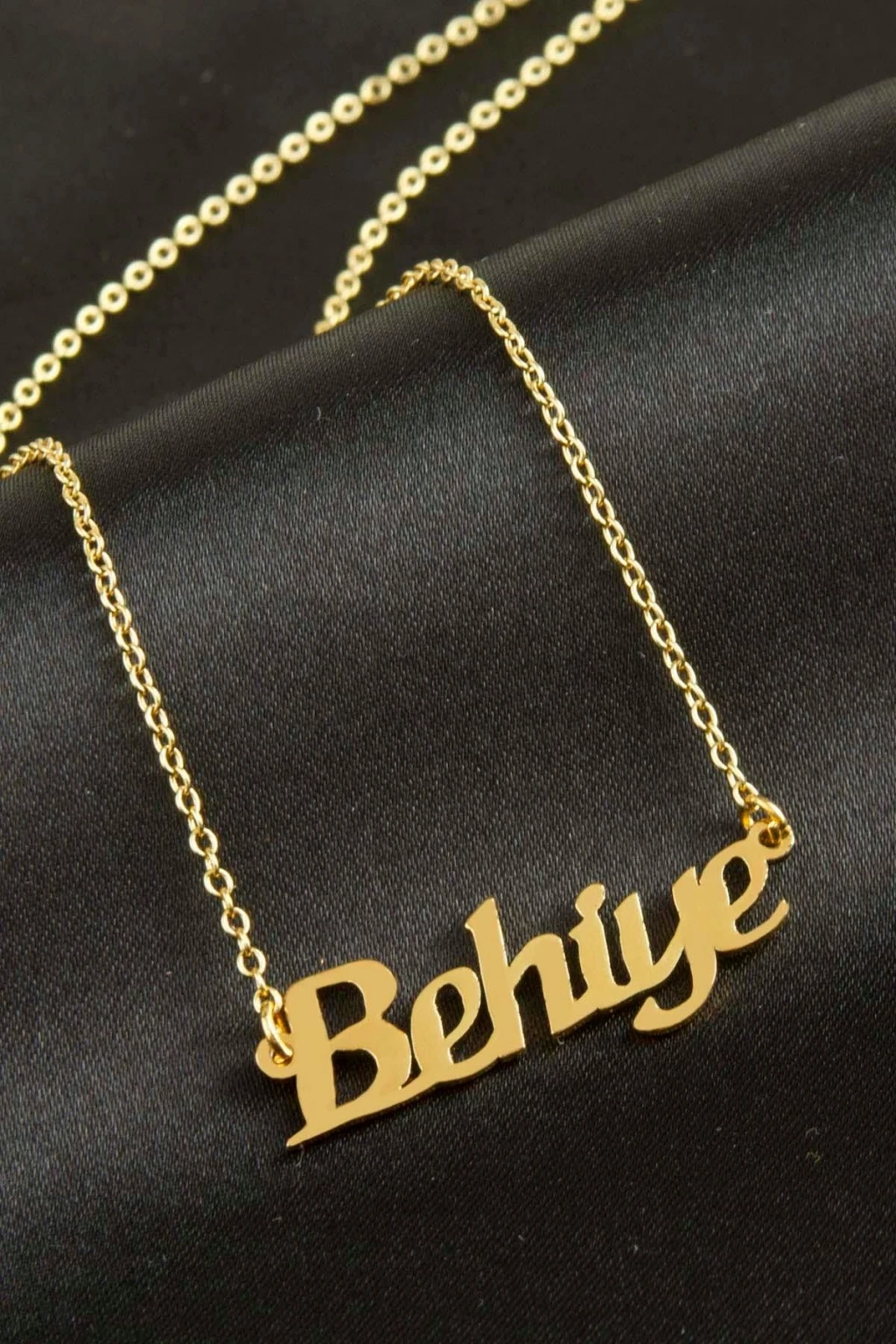 Behiye isimli kolye. İsimli kolye pirinç madeninden ve altın kaplamalıdır. Kişiye özel üretilmektedir.Yazdırmak istediğiniz ismi bize mesaj olarak iletmeniz gerekmektedir. Kullanıma bağlı olarak uzun süre kullanıma uygundur. Ürün malzemesi 1.sınıf kalitededir. Ürün ve zinciri sarı renktedir. Ürün zincir boyu 45 cm ve ürün üzerindeki isimler yaklaşık 3 cmdir. İsim boyları ürün ismine göre degişiklik göstermektedir.