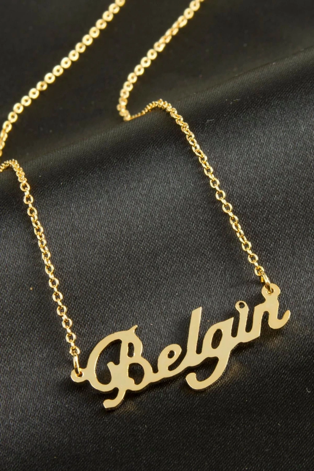 Belgin isimli kolye. İsimli kolye pirinç madeninden ve altın kaplamalıdır. Kişiye özel üretilmektedir.Yazdırmak istediğiniz ismi bize mesaj olarak iletmeniz gerekmektedir. Kullanıma bağlı olarak uzun süre kullanıma uygundur. Ürün malzemesi 1.sınıf kalitededir. Ürün ve zinciri sarı renktedir. Ürün zincir boyu 45 cm ve ürün üzerindeki isimler yaklaşık 3 cmdir. İsim boyları ürün ismine göre degişiklik göstermektedir.