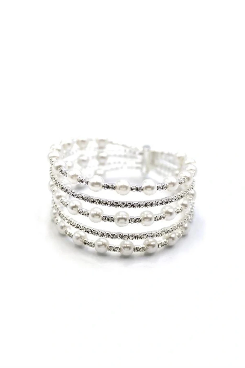Beş Sıra İncili Su Yolu Bileklik - Gümüş