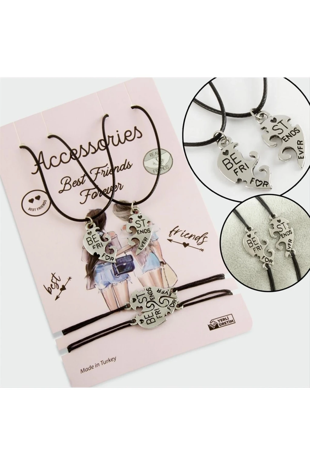 Deri Set Kolye; Ürün malzemesi metal ve vinlex deridir. Ürün kartıdır. Paketiyle beraber gönderilecektir. Paket içersin de 2 adet bileklik ve 2 adet kolye olarak gönderilecektir.