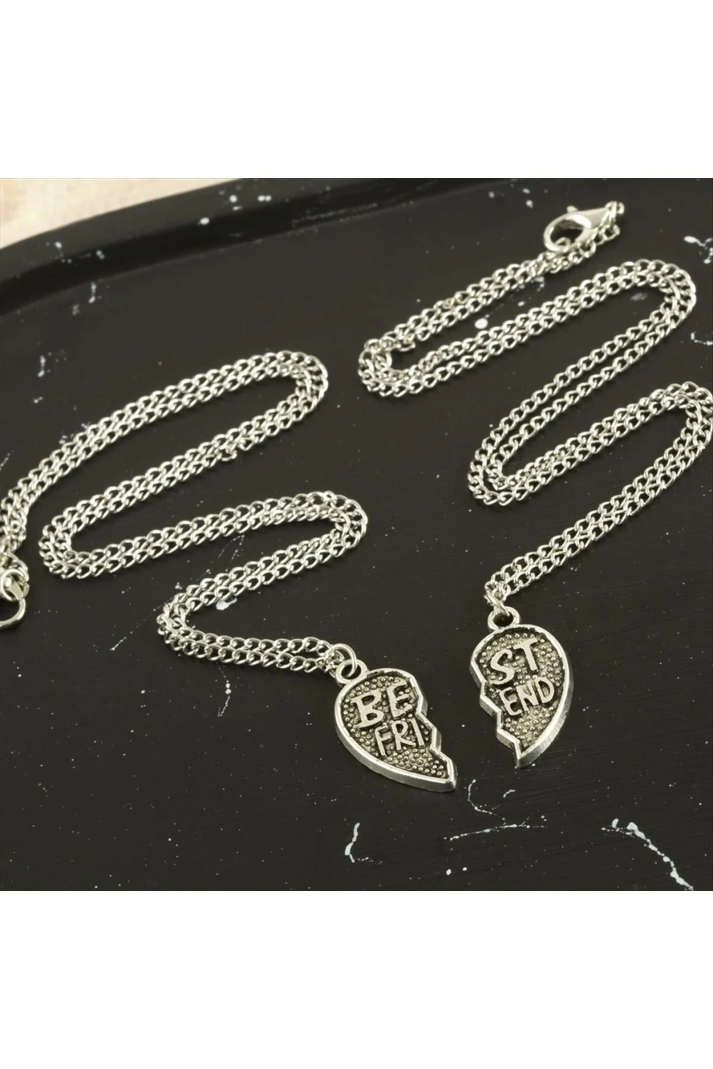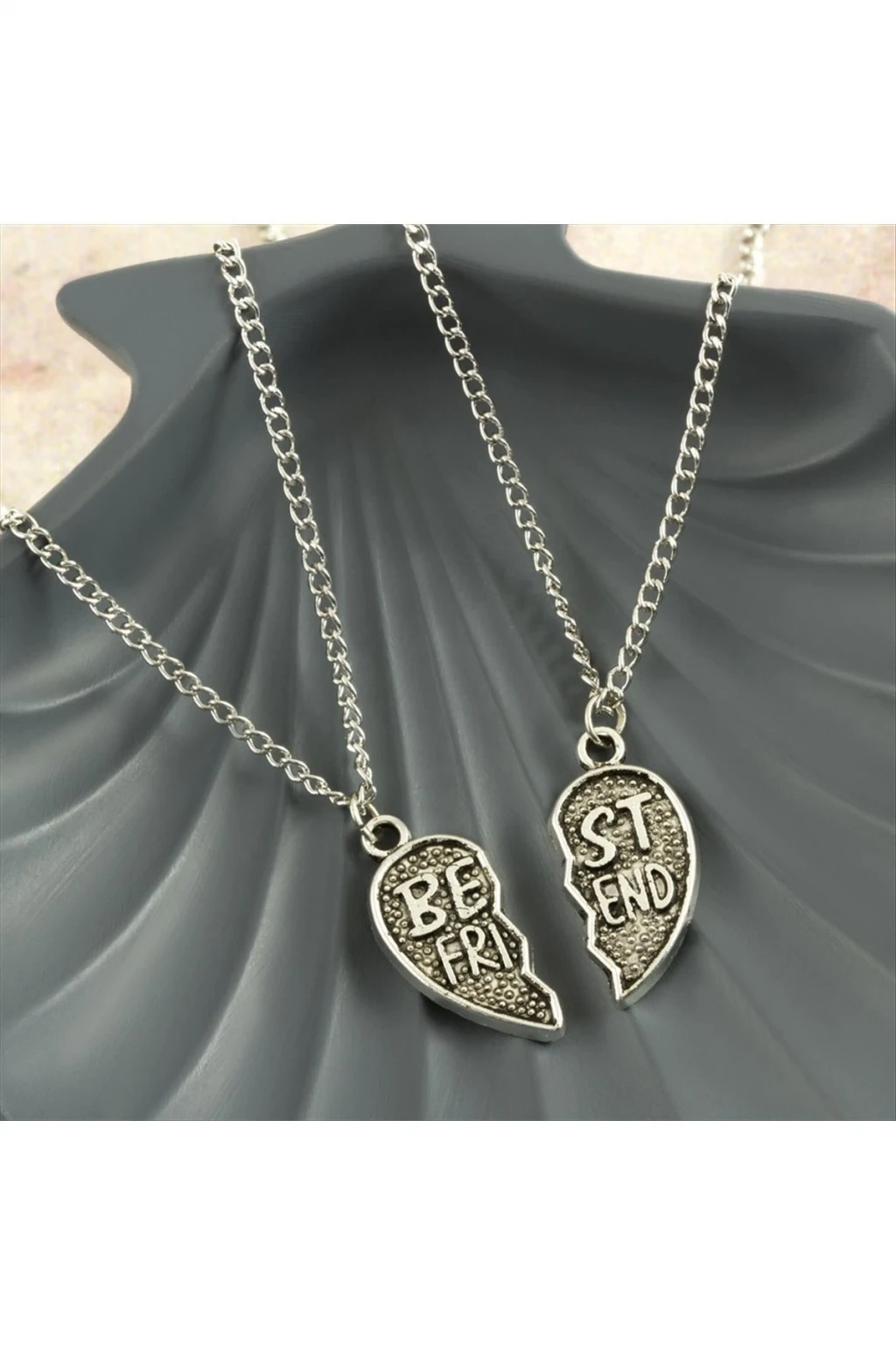 Kolye; Malzemesi metaldir. Ürün çift olarak gönderilecektir. Ürün kalp yapıdadır. Best friends kolyesi olarak bilinir.