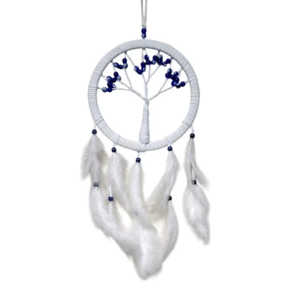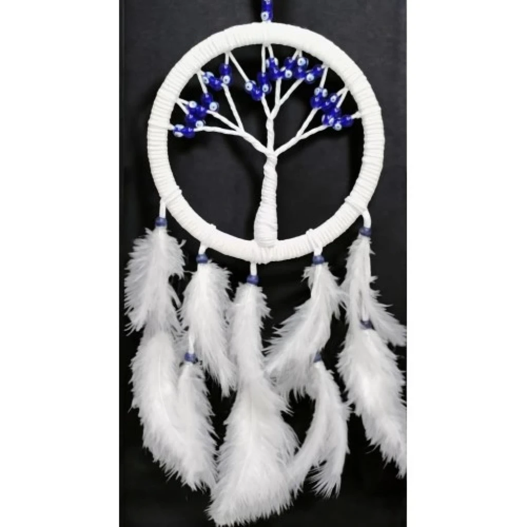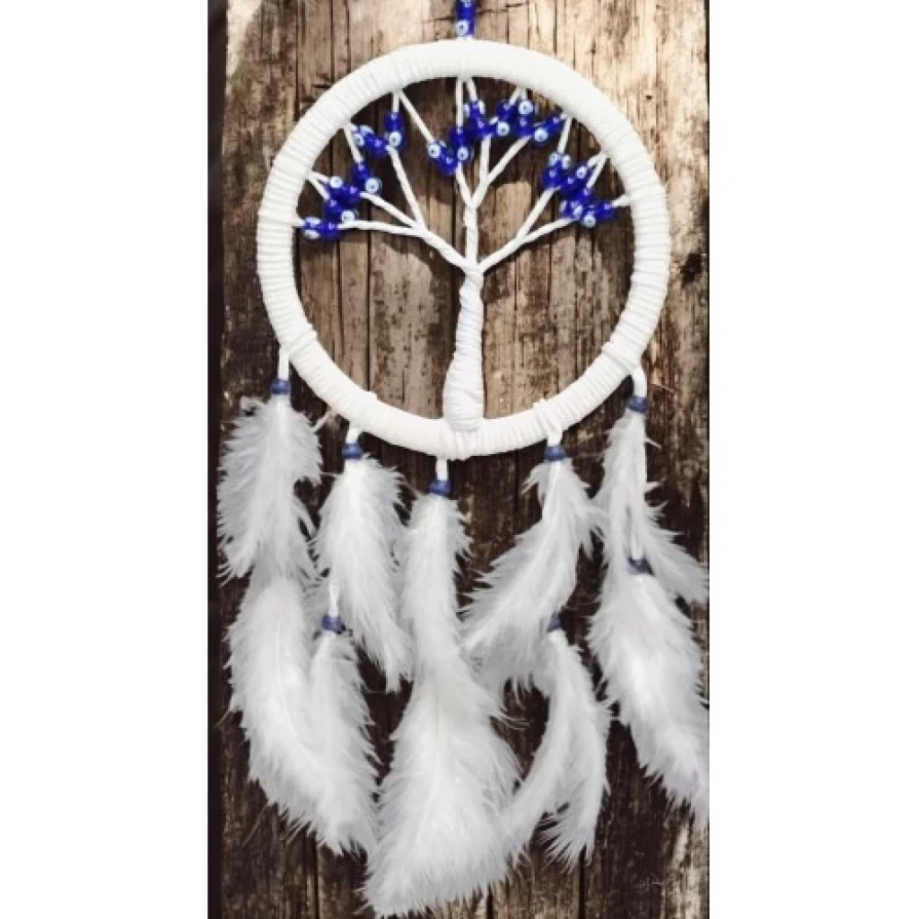 Duvar süsümüz hayat ağacı şekillidir. Duvar süsümüzün yuvarlak kısmı 21 santimetre çapındadır. Cam nazar boncukları ile süslenmiş olan ürünümüz el yapımıdır. Ürünümüz ip dahil yaklaşık 58 santimetre boyundadır.