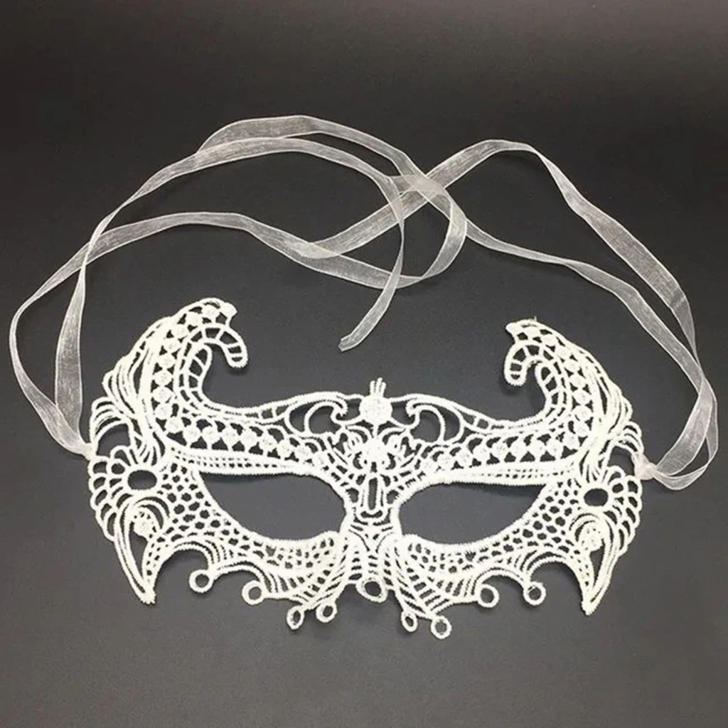 Beyaz Renk Dantel Kesim Balo Maskesi