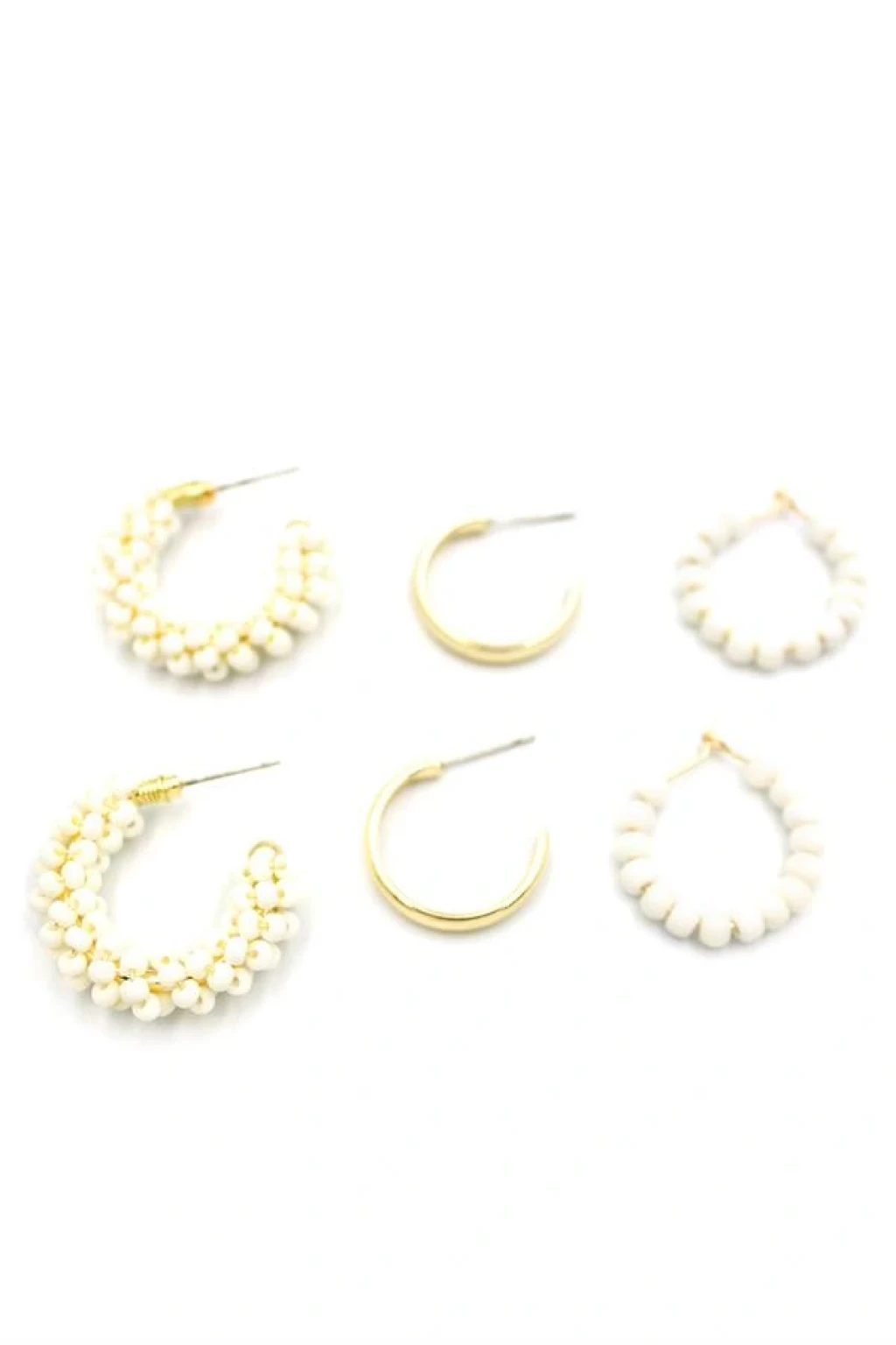 Boncuklu Küpe Seti - Krem