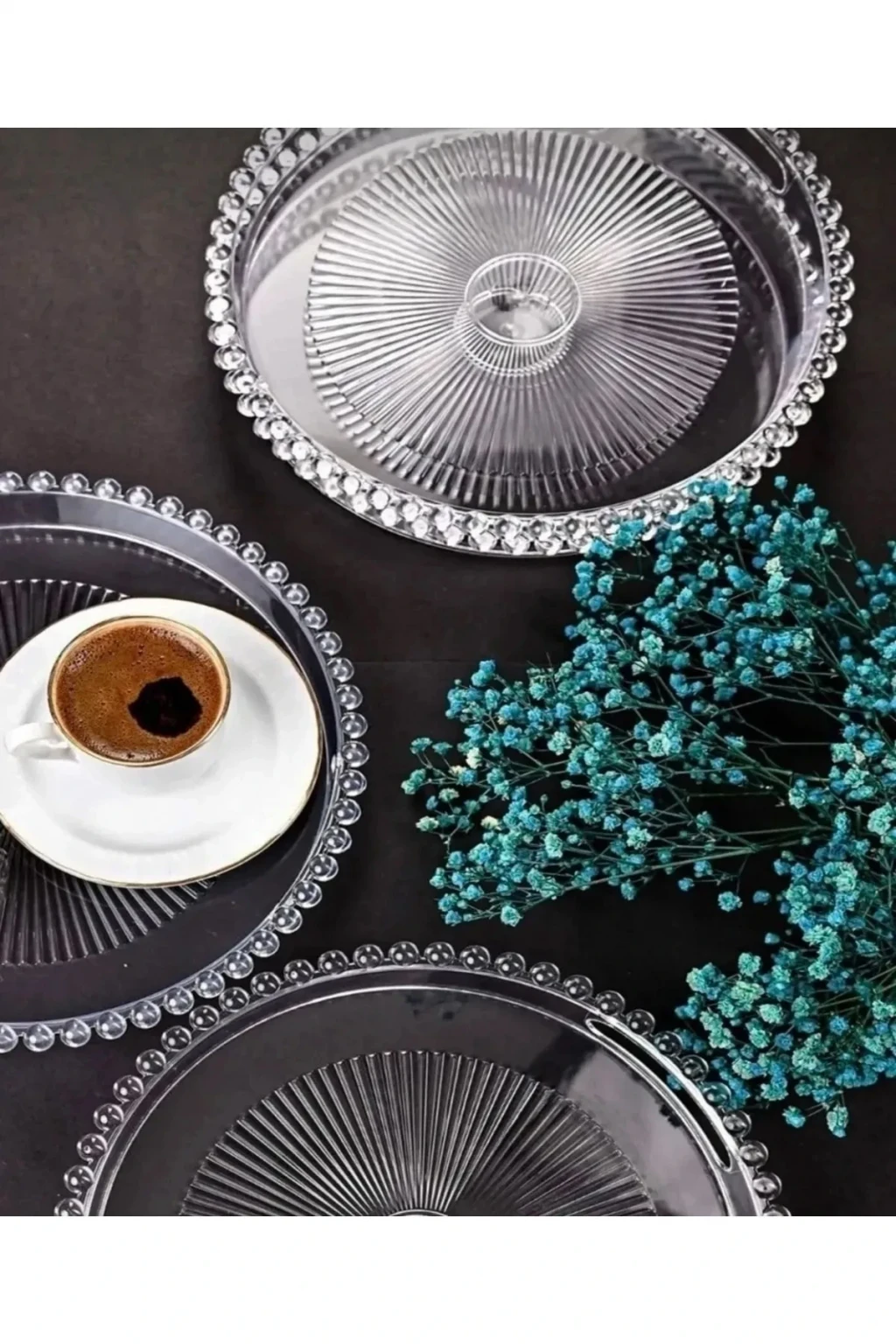 Boncuklu Sunum Tepsisi, Şeffaf Tepsi, Çay Tepsisi, Sunumluk 23 Cm