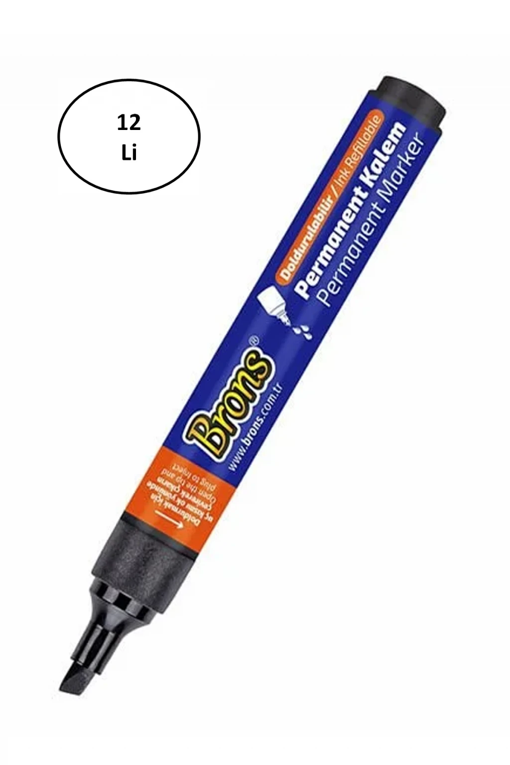 Brons BR-9720 Kesik Uç Siyah Permanent Kalem 12'li