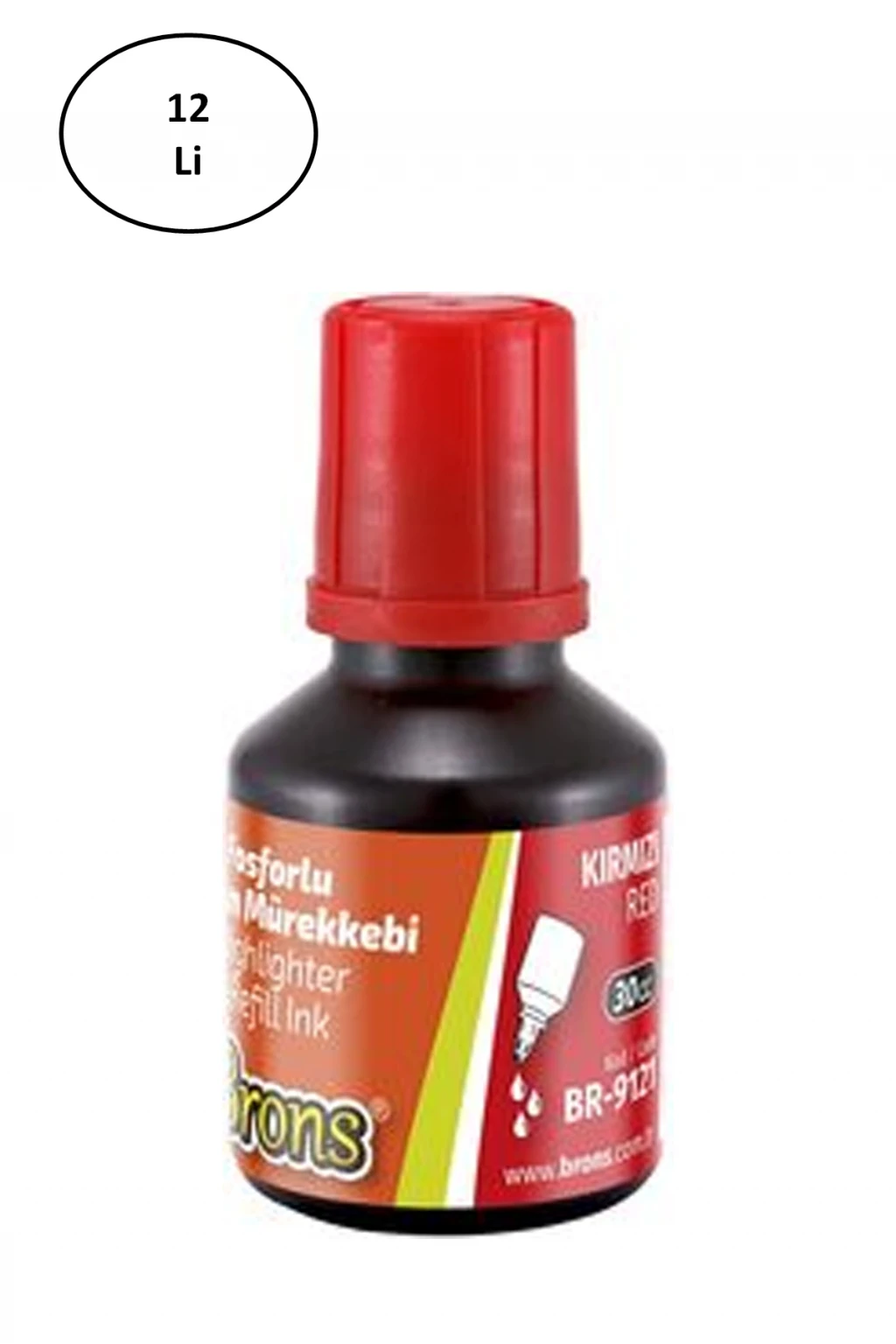 Brons Fosforlu Kalem Mürekkebi 30 cc. Kırmızı 12'li
